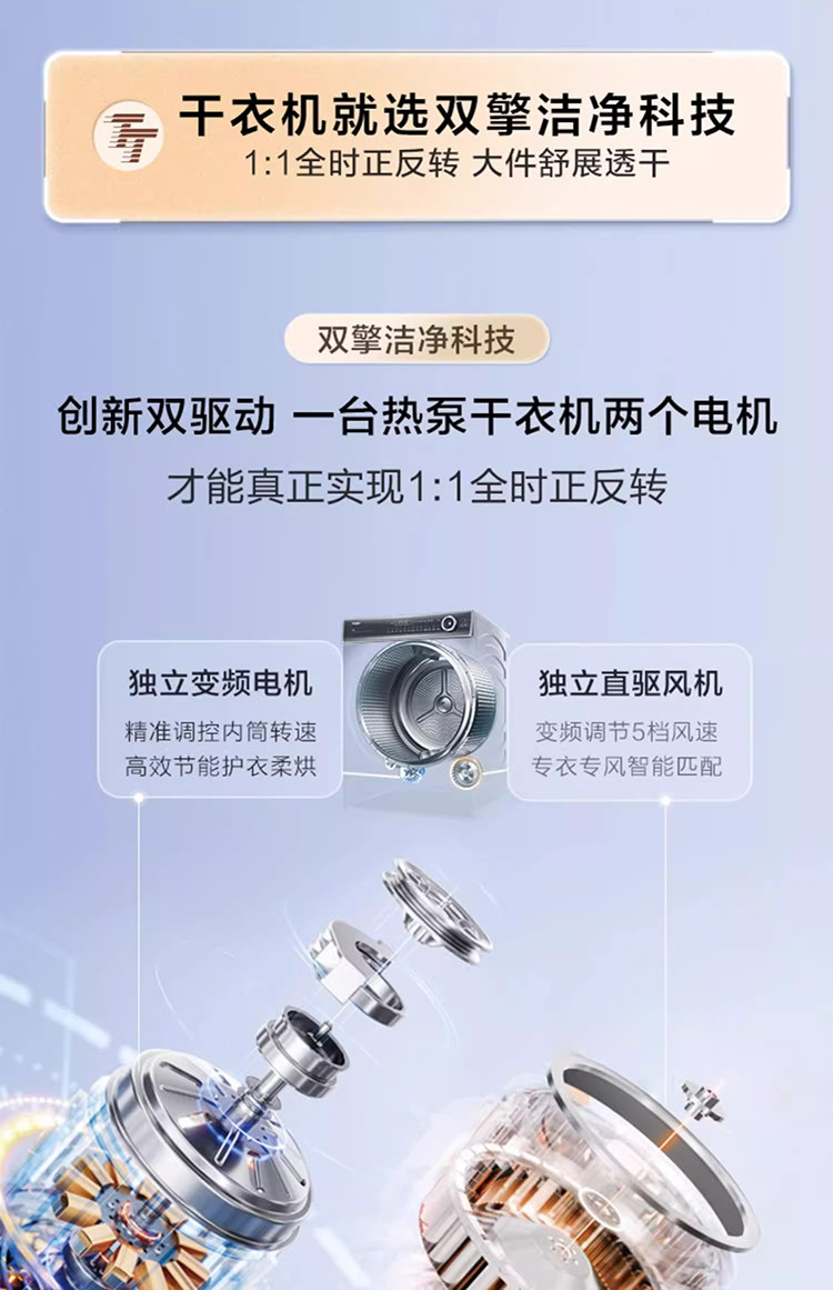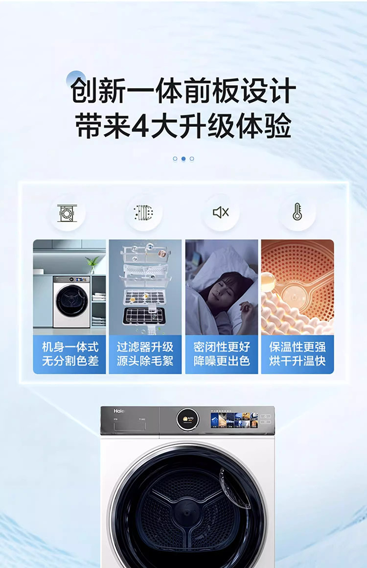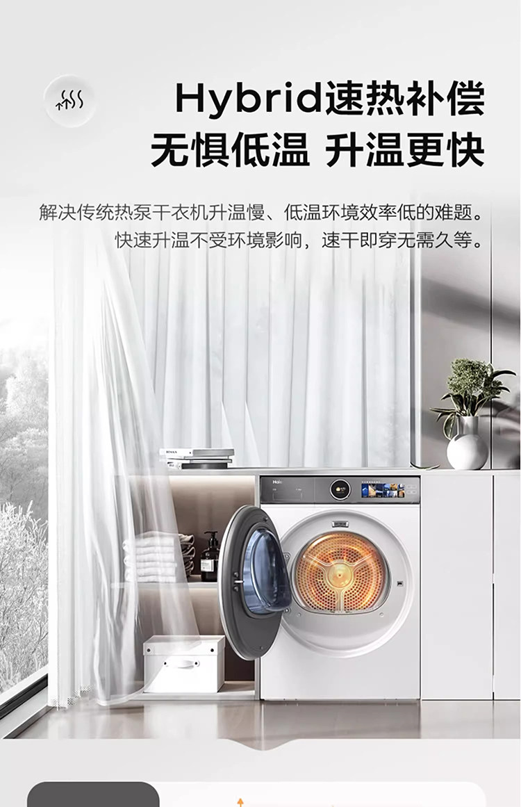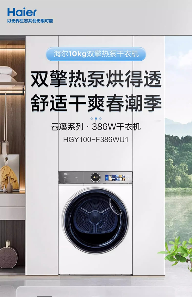 Haier Slim and Beautiful Dryer for Home Use, Ultra-Thin White 386 Dual Engine Heat Pump 10kg Hgy100-F386Wu1