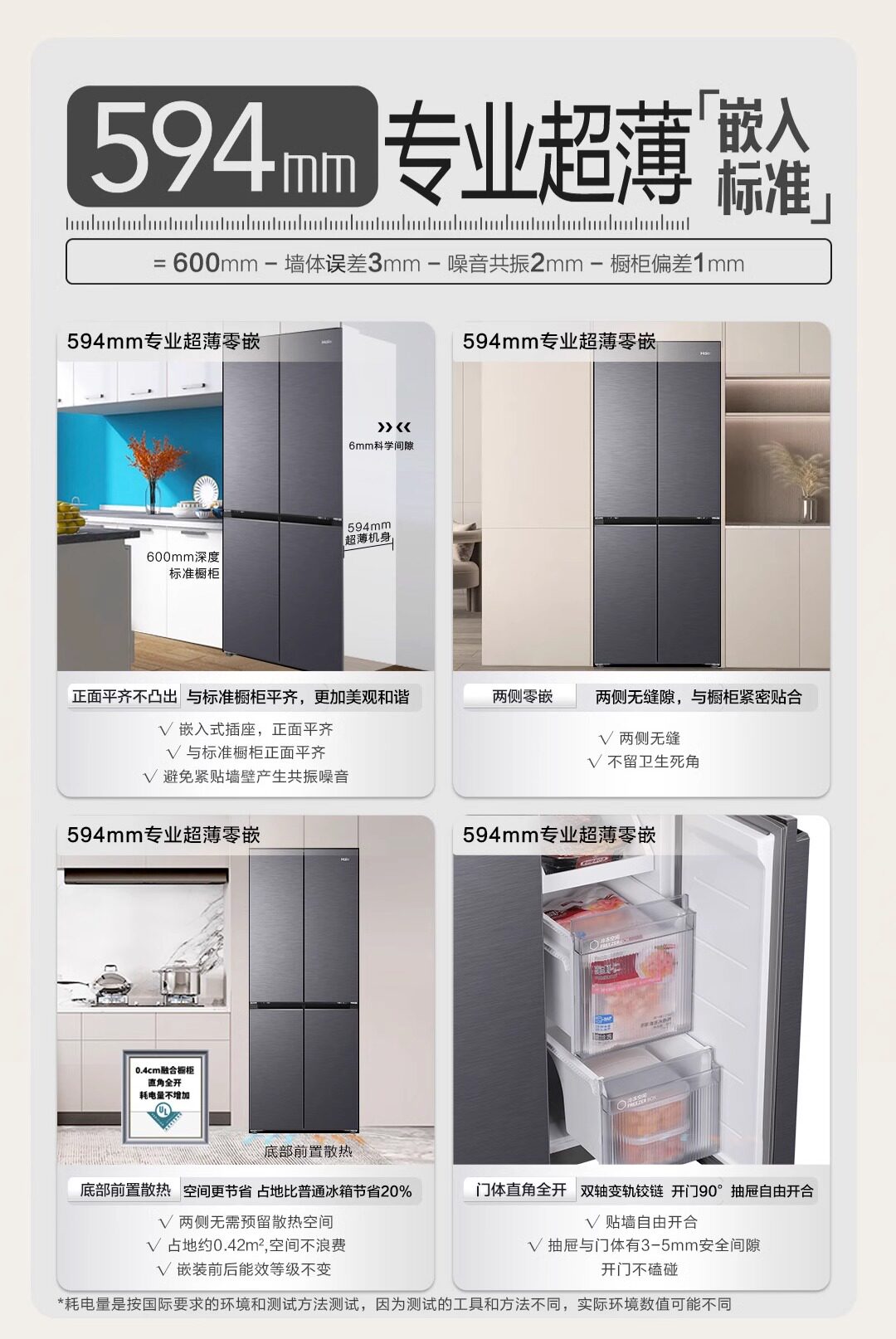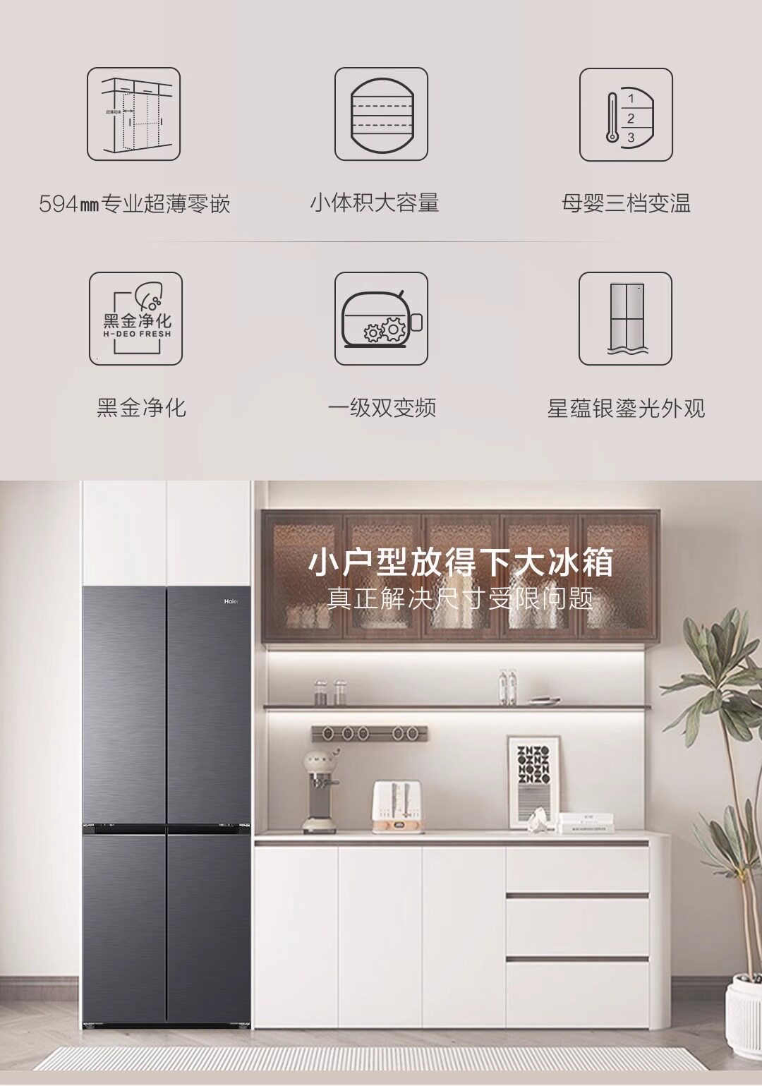 Haier BCD-418WGHTDB9S9U1 double-open four-door 418L ultra-thin zero-embedded first-class refrigerator