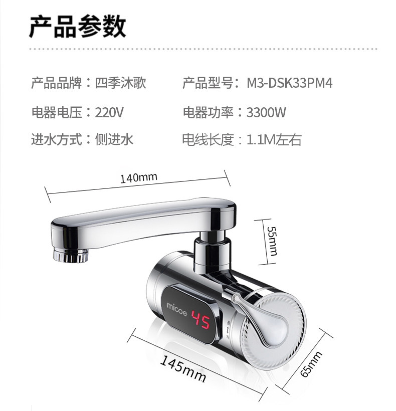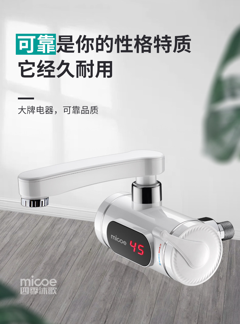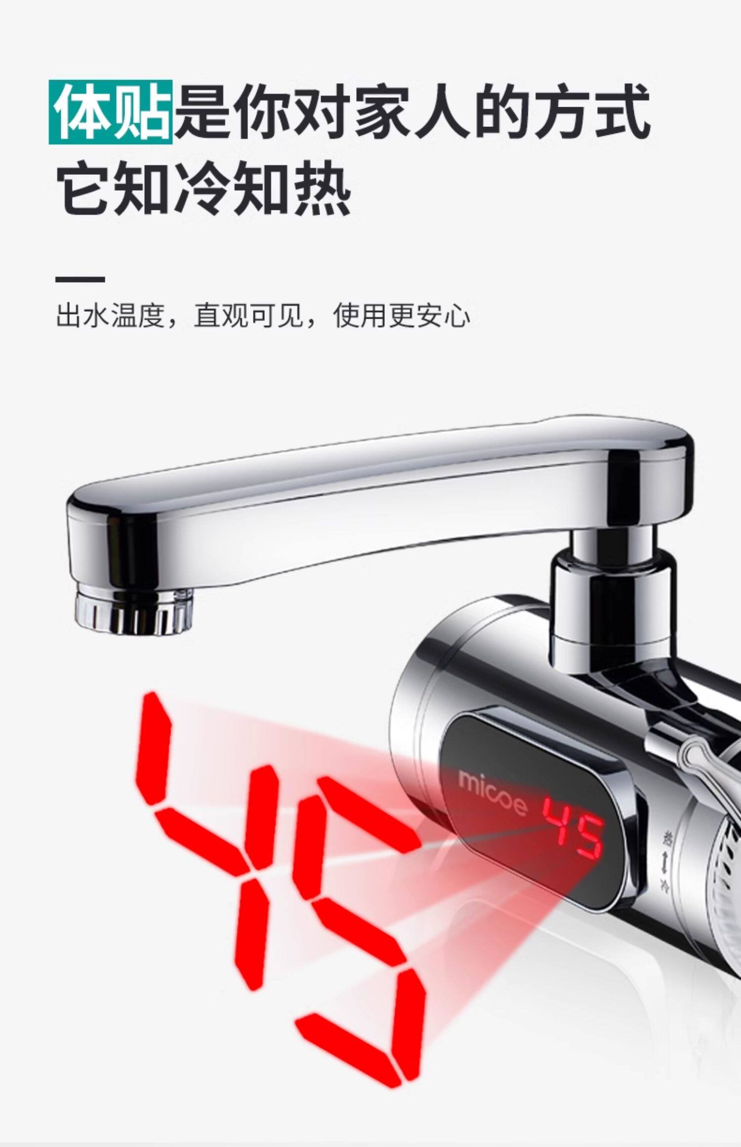 Micoe Instant Electric Water Heater Faucet, Stainless Steel Side Inlet, Kitchen Household Tap Water Heating