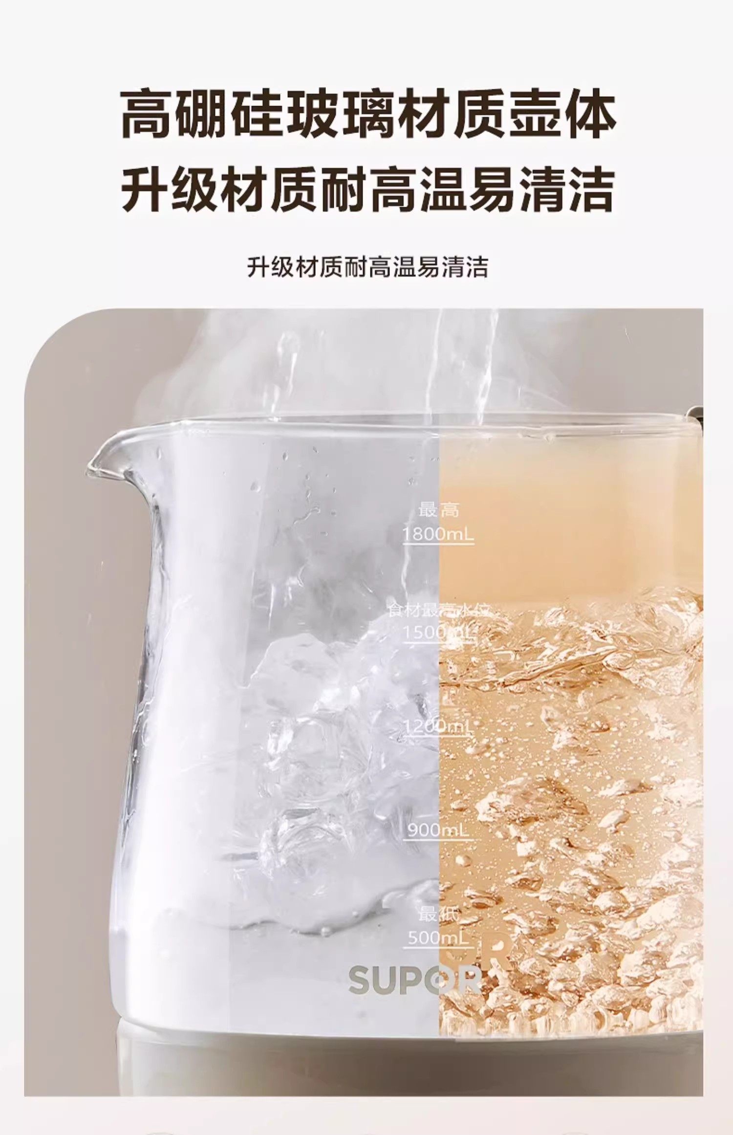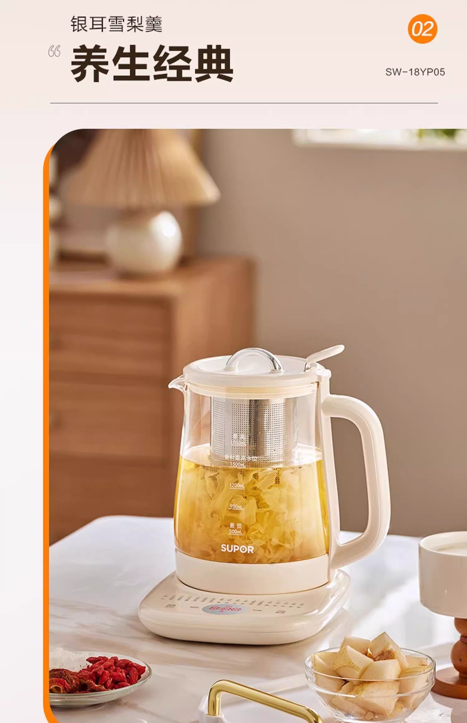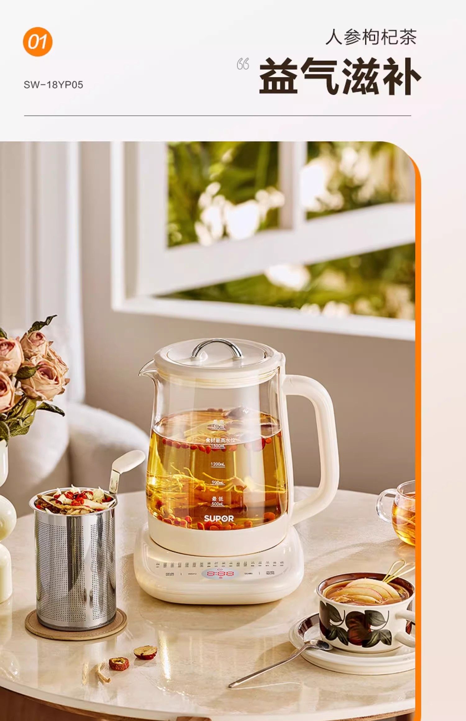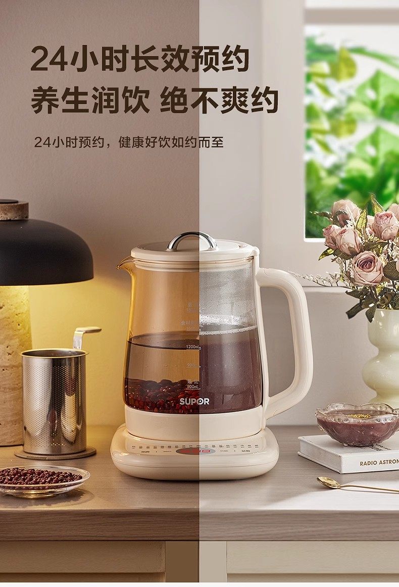Supor Health Pot Household Multifunctional Tea Kettle Office Small Fully Automatic Glass Water Boiler 2024 New Model