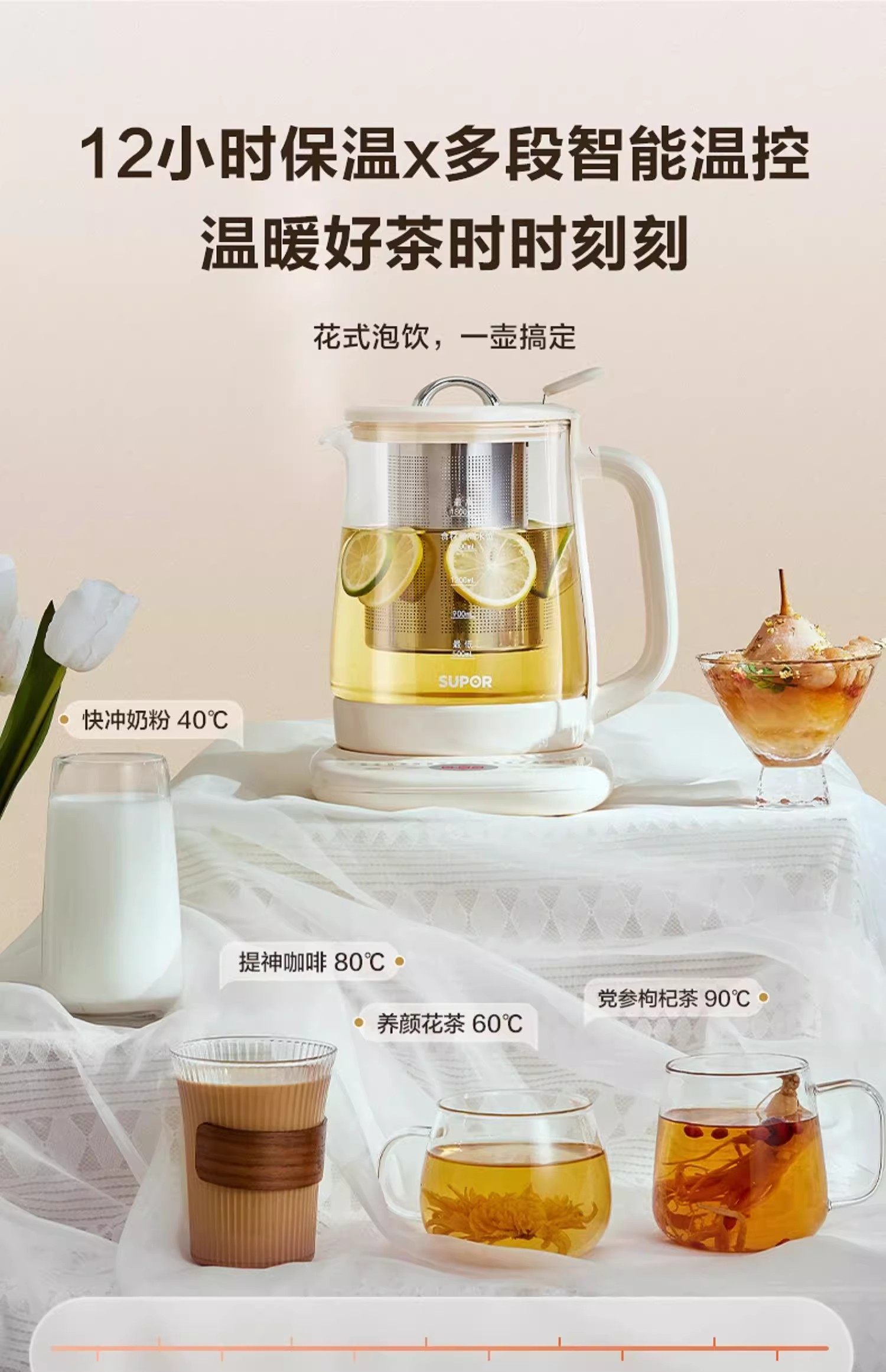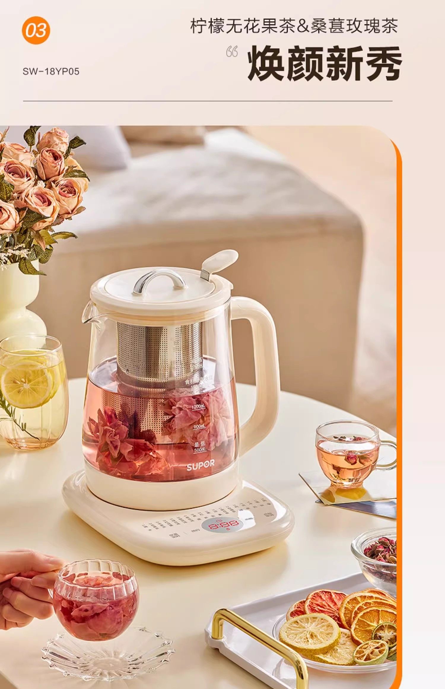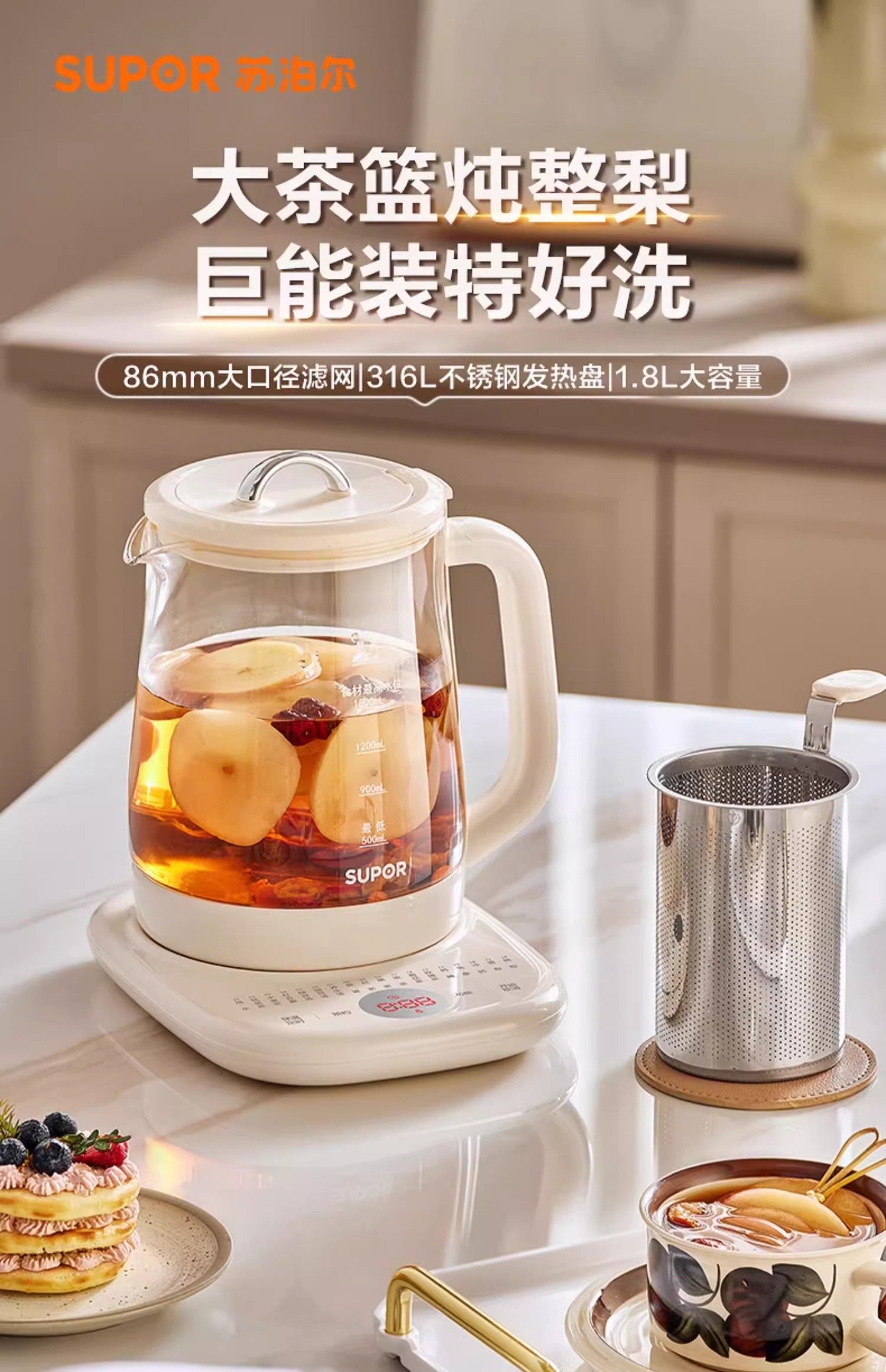 Supor Health Pot Household Multifunctional Tea Kettle Office Small Fully Automatic Glass Water Boiler 2024 New Model