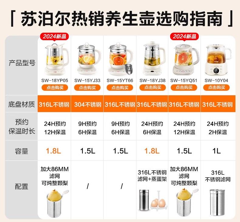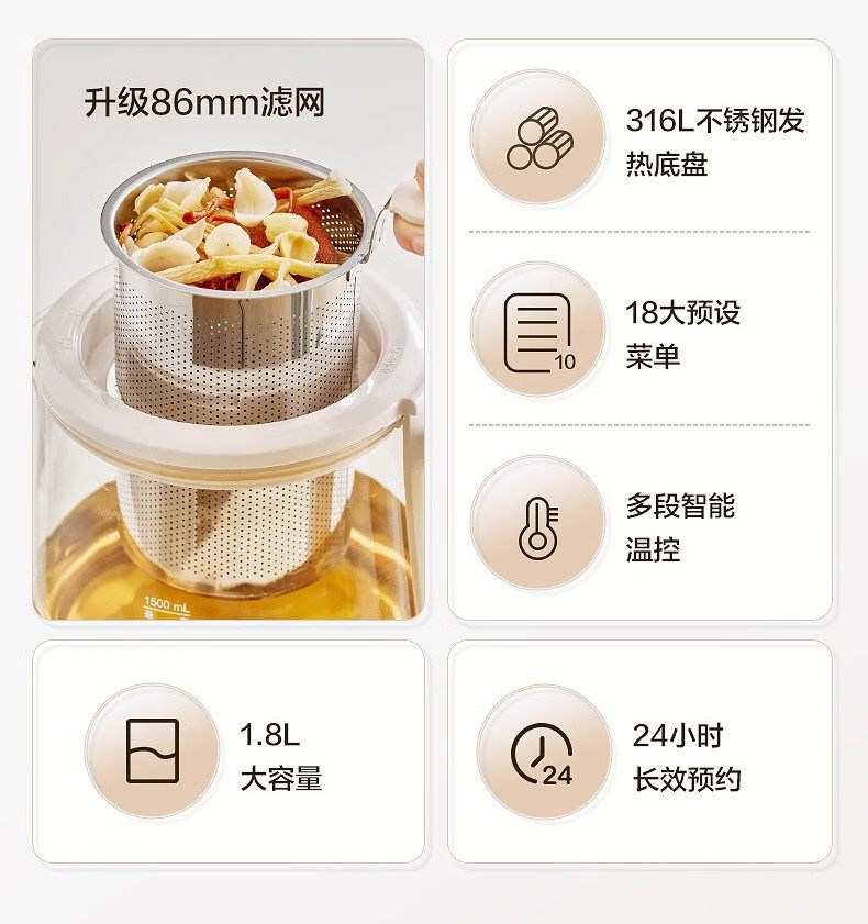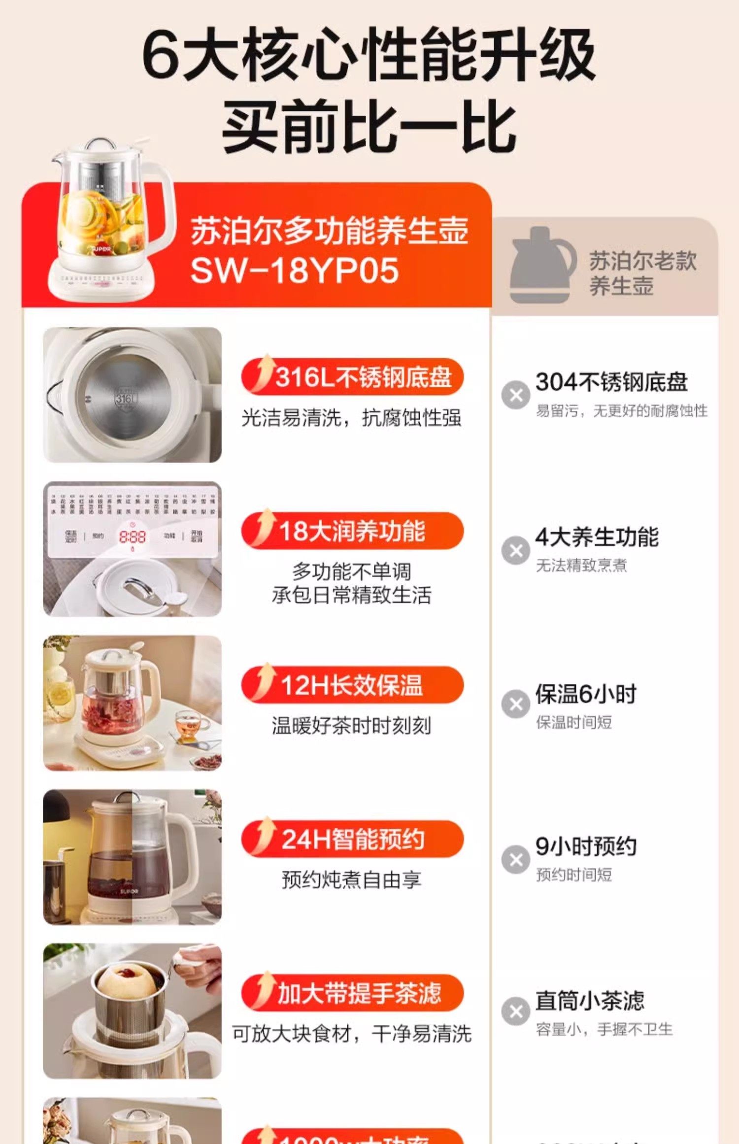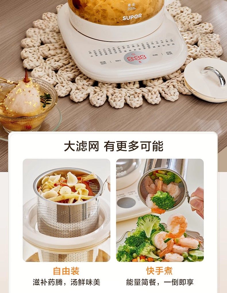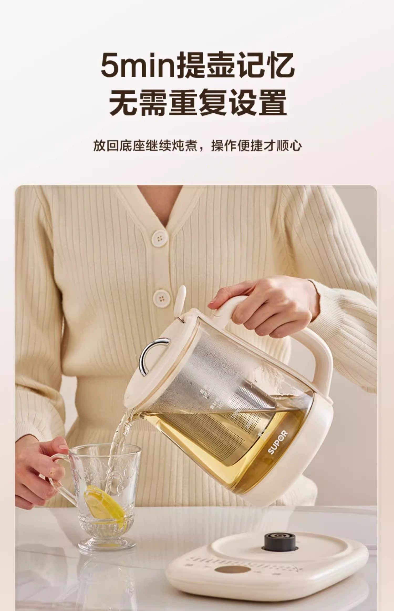 Supor Health Pot Household Multifunctional Tea Kettle Office Small Fully Automatic Glass Water Boiler 2024 New Model