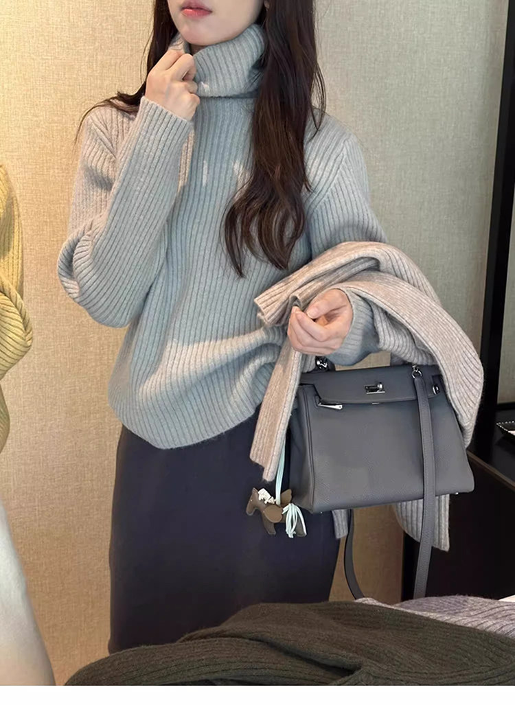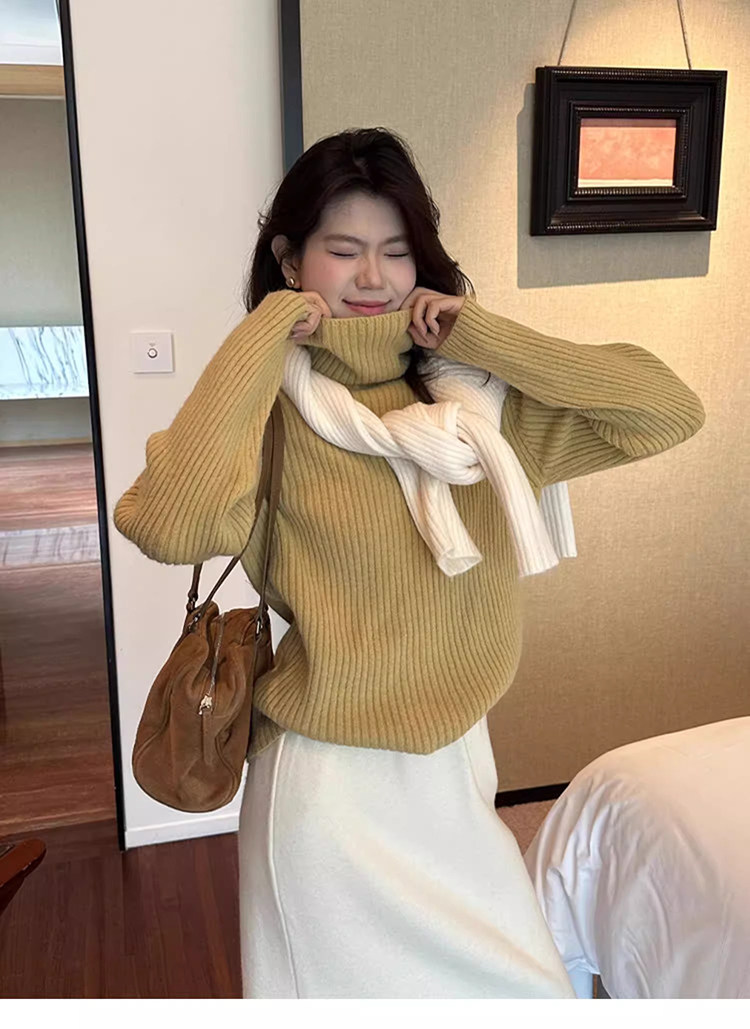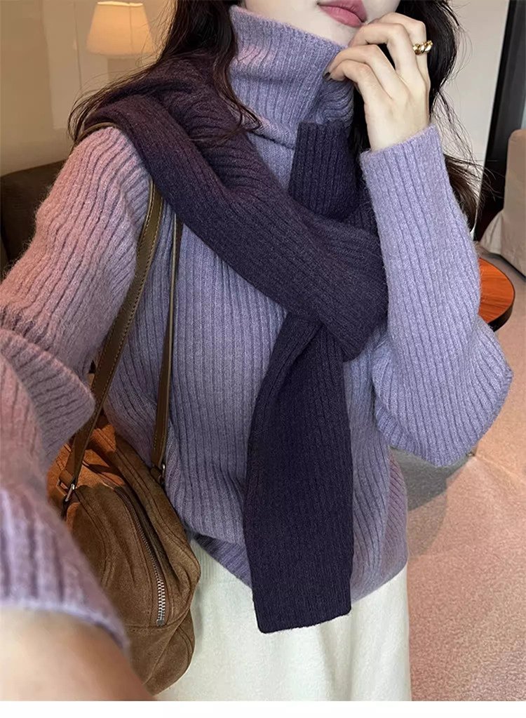 Purple Turtleneck Cashmere Knit Sweater for Women, Autumn and Winter Korean Style, Lazy and Loose, Inner Layer Sweater, Warm and Thick, Outerwear Top