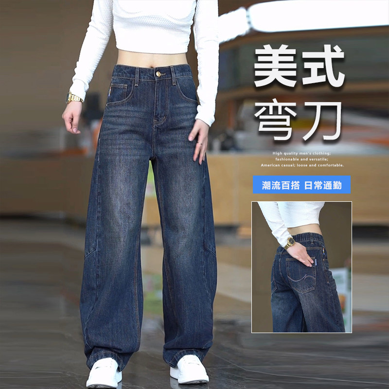 American trendy scimitar jeans for men in spring and autumn high street handsome wide-leg pants versatile loose casual retro straight pants