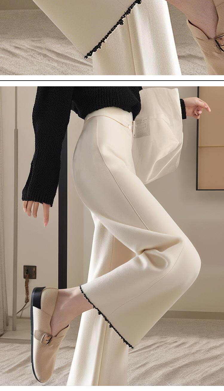 Color Classification White Chenille Wide-Leg Pants [2024 New Winter Narrow Wide-Leg Pants Design Niche Heavy-Duty Pleated Tassel High Waistdrapedslimming Lookfashioneasiest for Matchcasual Pants Petitesclassy