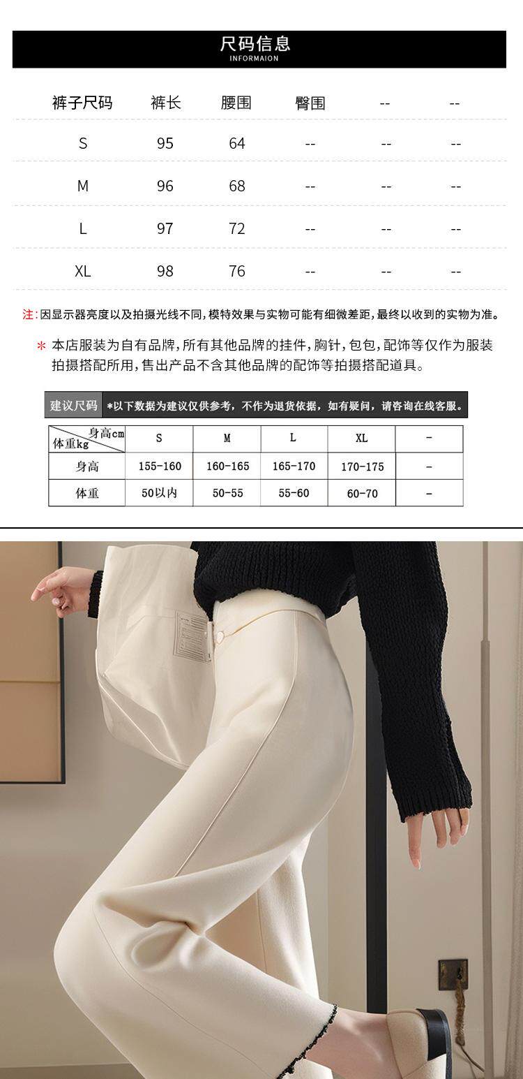 White Chenille Wide-Leg Pants for Women 2024 New Winter Style Loose High-End Feel Petite High-Waisted Straight Casual Pants