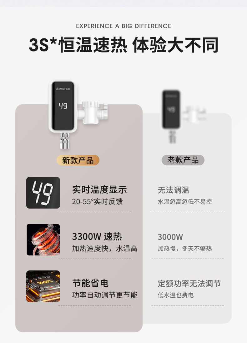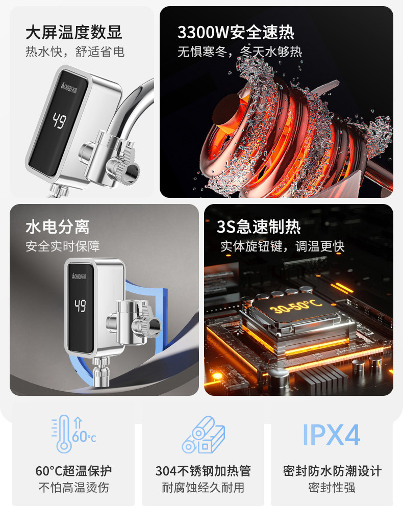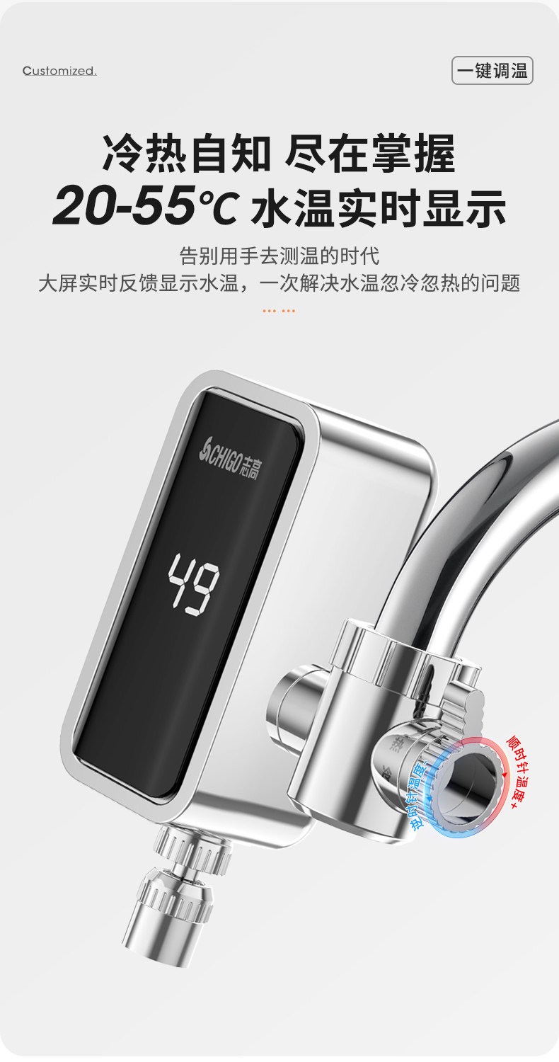 Chigo Installation-Free Electric Hot Water Faucet Instant Hot Kitchen Bathroom Tap Water Household Electric Water Heater