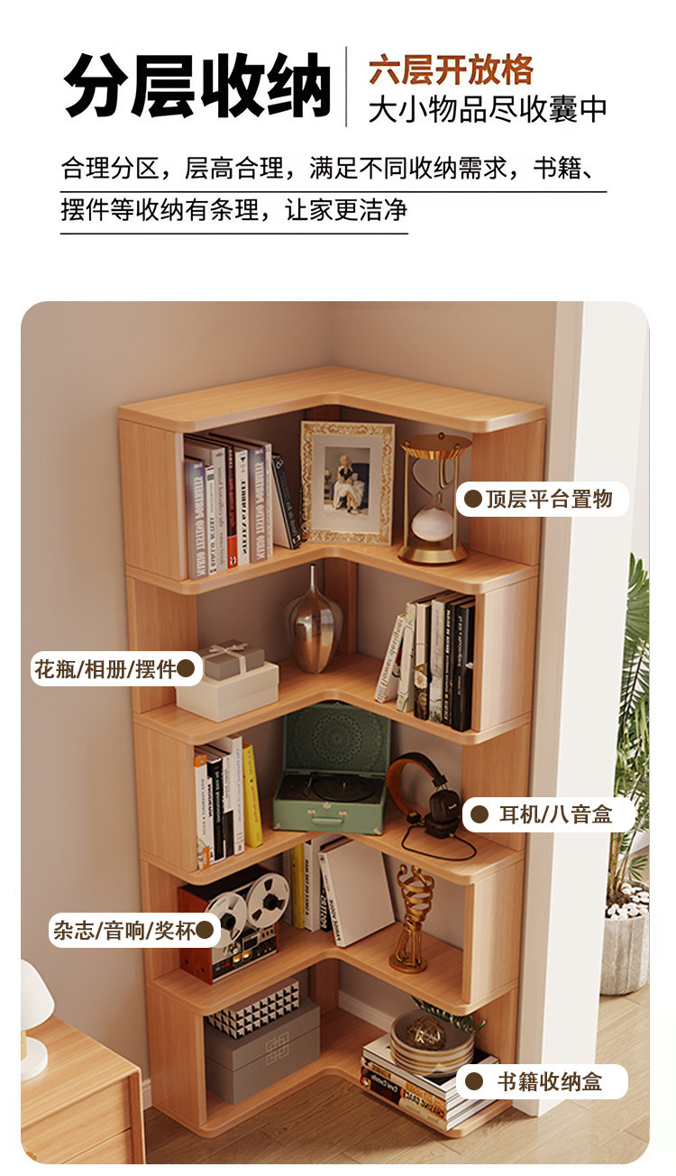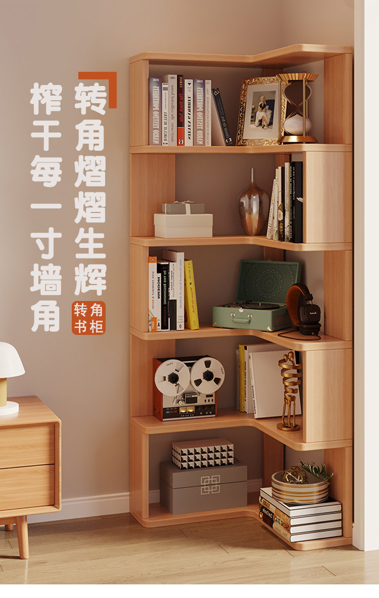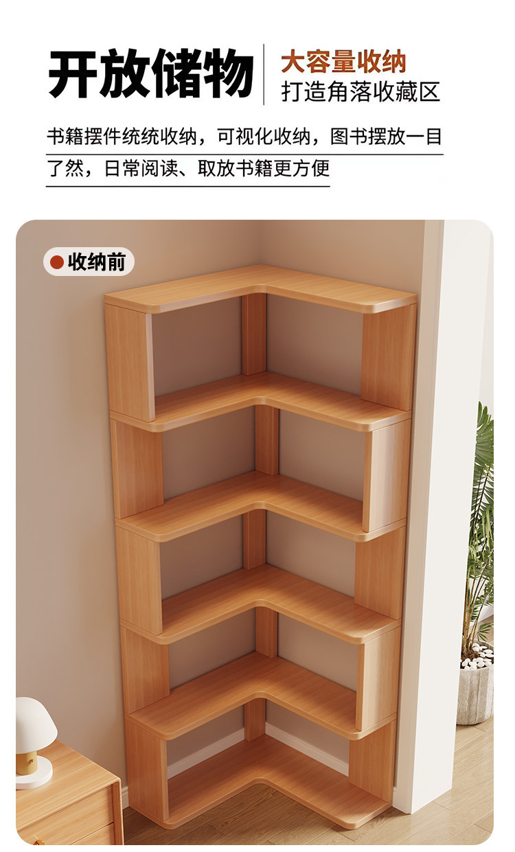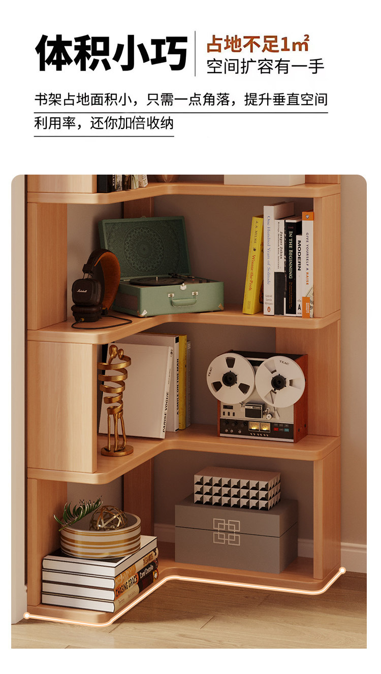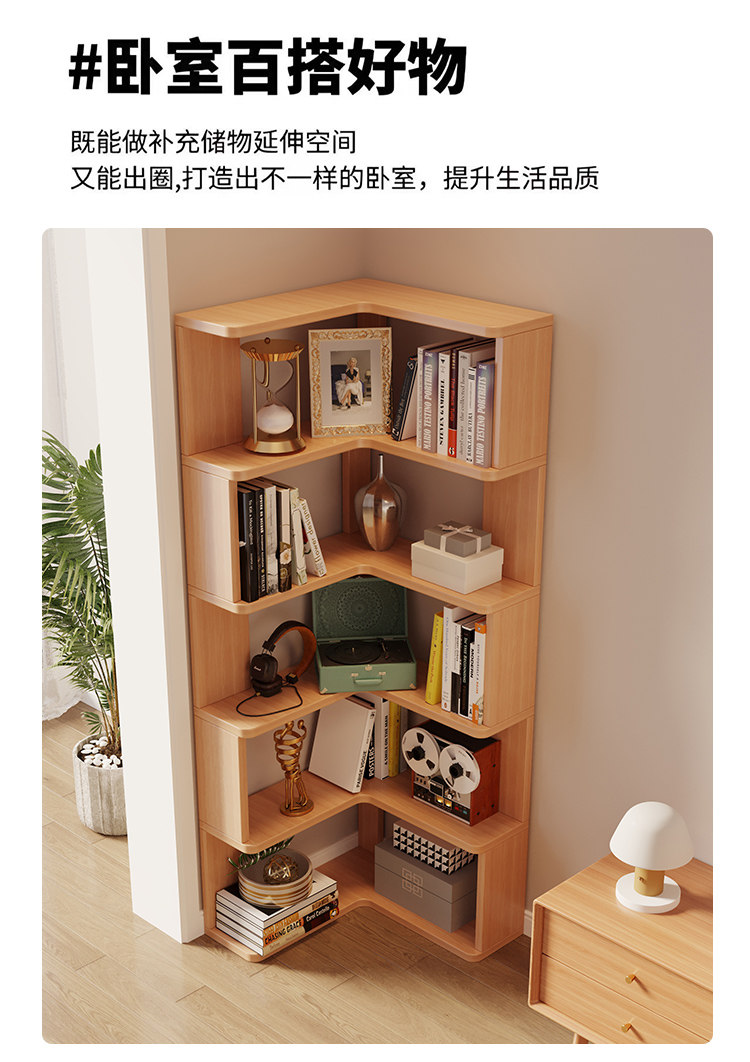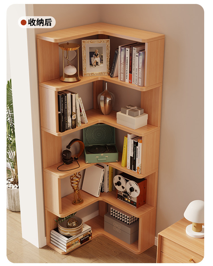 Solid Wood Corner Bookshelf Integrated Storage Rack Wall-Mounted Floor-Standing Bookshelf Home Corner Storage Shelf Bookcase Storage Cabinet