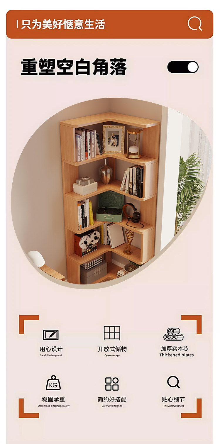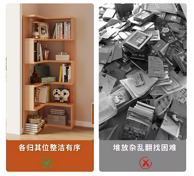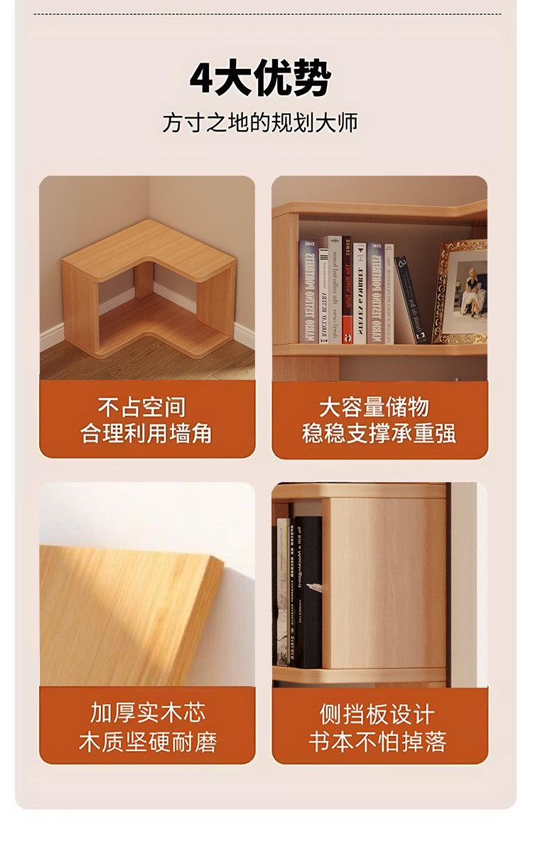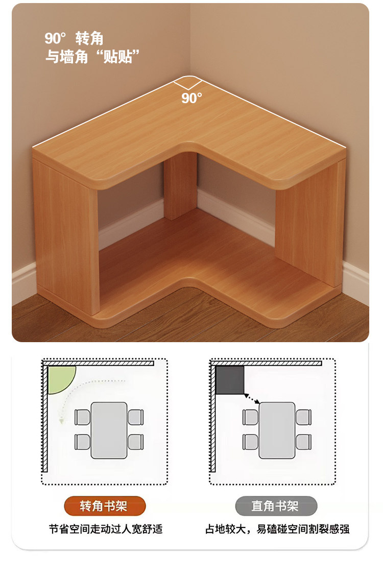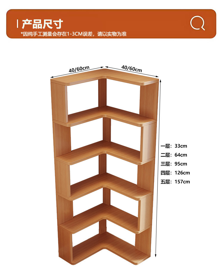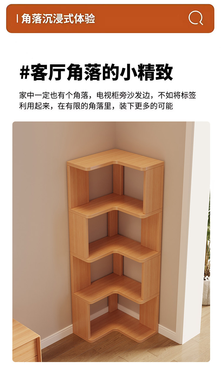 Solid Wood Corner Bookshelf Integrated Storage Rack Wall-Mounted Floor-Standing Bookshelf Home Corner Storage Shelf Bookcase Storage Cabinet