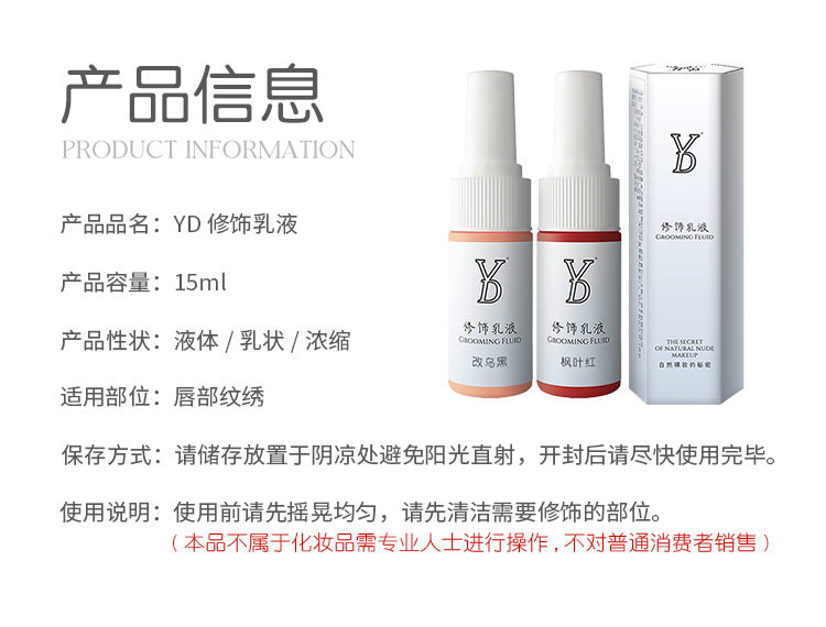 Yd Lip Tattoo Pigment Semi-Permanent Natural Lip Liquid Color Cream Lip Bleaching Dark Lip Correction European Lip Gradient Pure Plant-Based