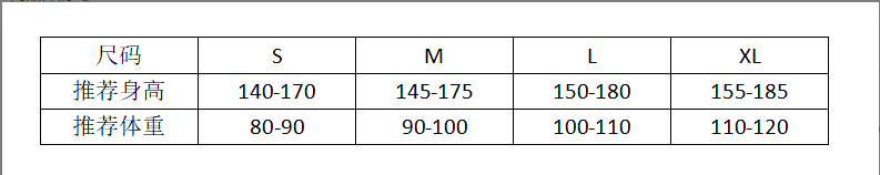 China (cm) 165 / 88-90 170 / 96-98 175 / 108-110 180 / 118-122 185 / 126-130