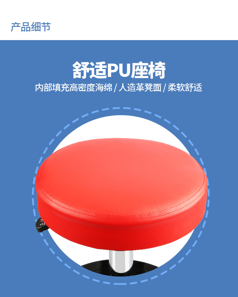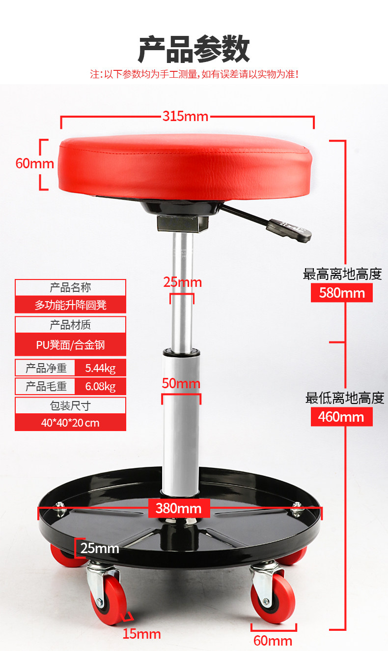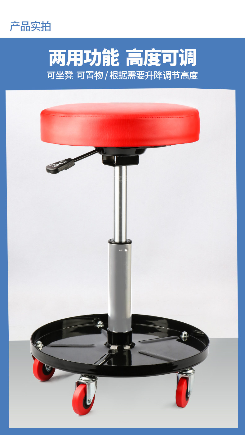 Color Classification Multi-Function Adjustable Auto Repair Round Stool - Red