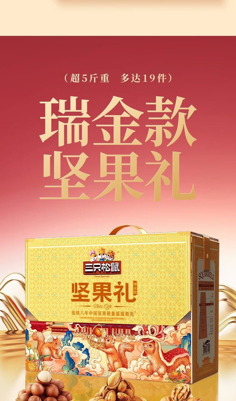 [Three Squirrels_Nut Gift Pack Ruojin 2835g/19 Bags] Gift Box Snack Gift Pack