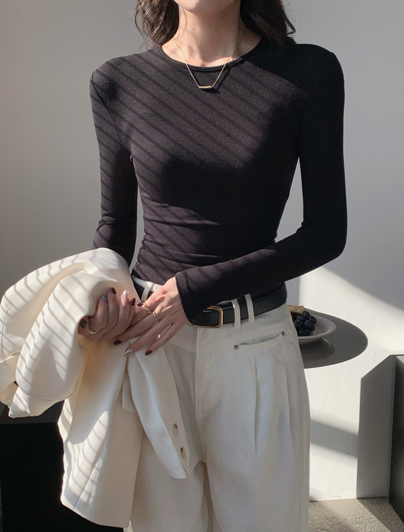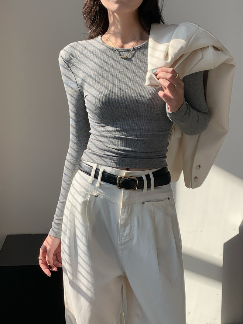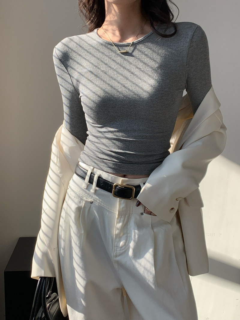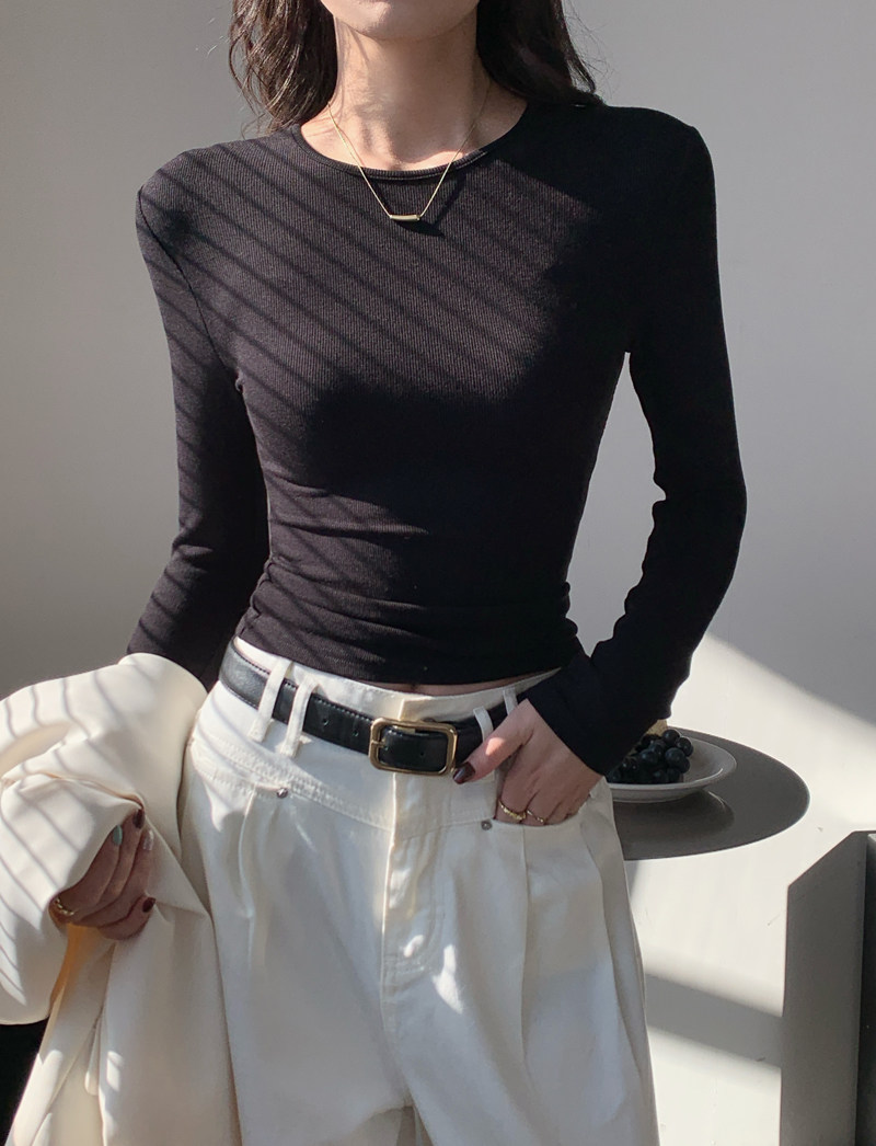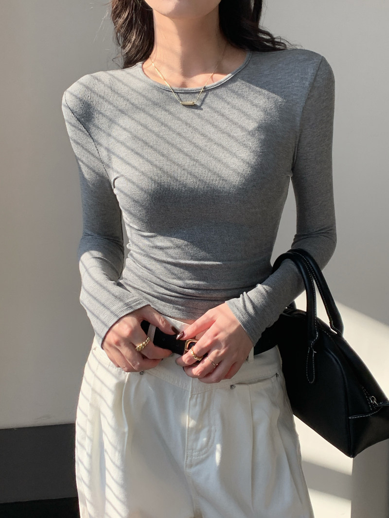 Body-Shaping Inner Wear, Tight-Fitting Base Shirt, Long-Sleeved T-Shirt for Women, New Autumn and Winter Style, Stylish Slim-Fitting Khaki Round-Neck Top