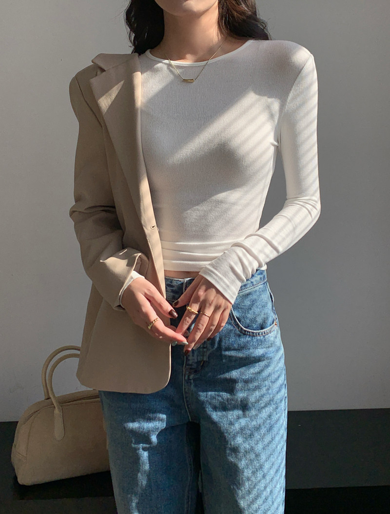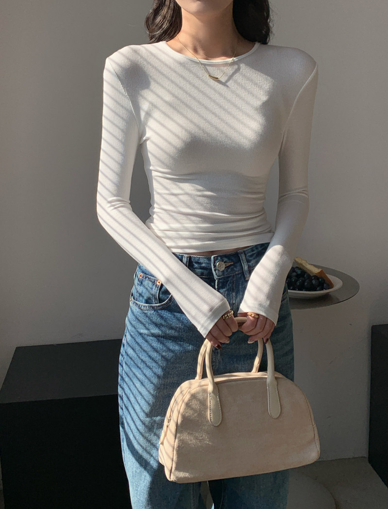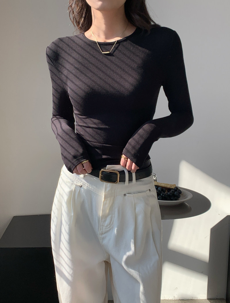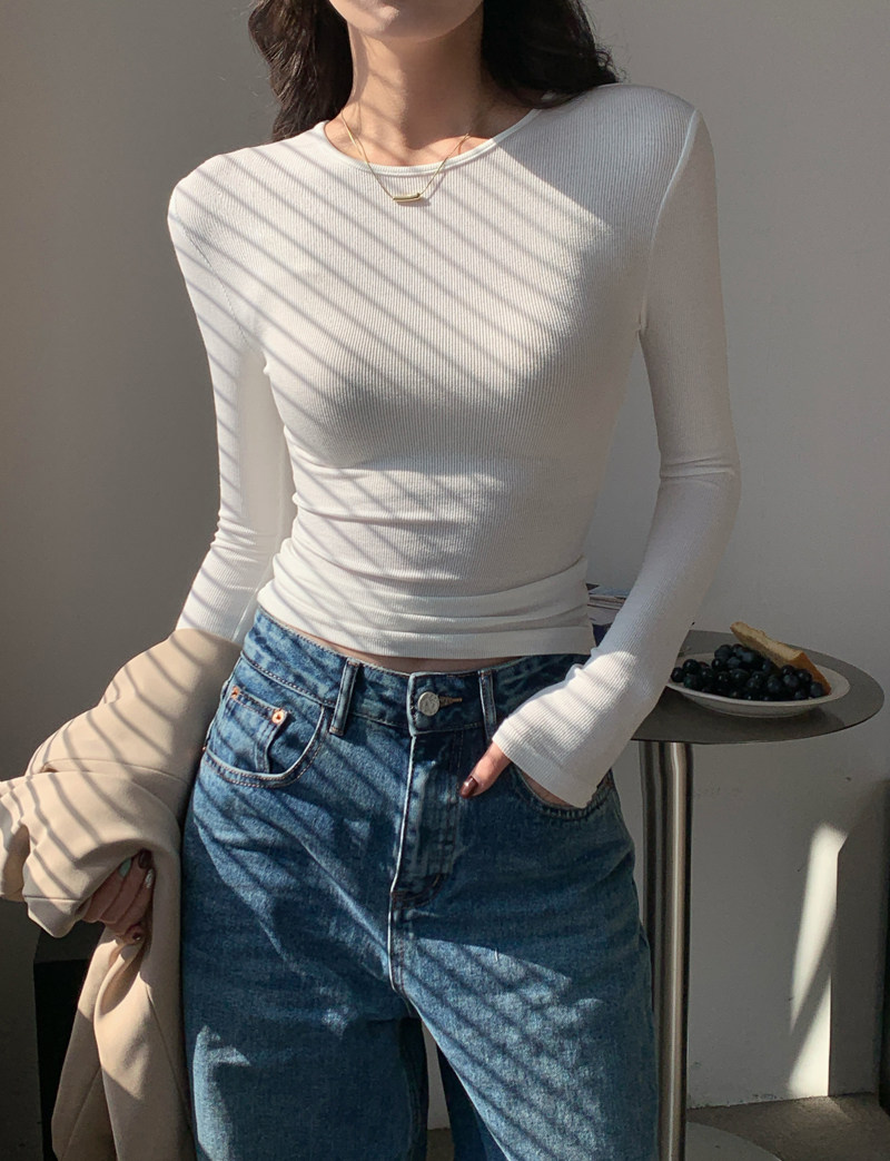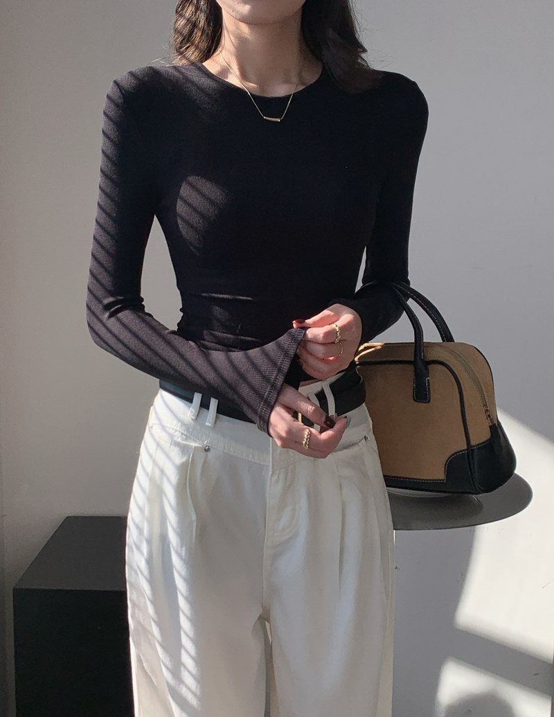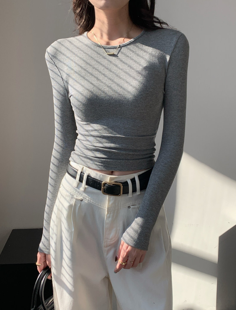 Body-Shaping Inner Wear, Tight-Fitting Base Shirt, Long-Sleeved T-Shirt for Women, New Autumn and Winter Style, Stylish Slim-Fitting Khaki Round-Neck Top