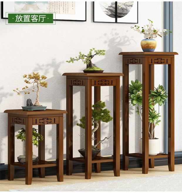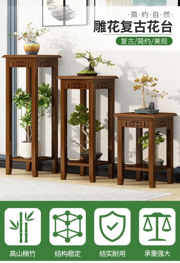 Fish Tank Load-Bearing Base Bracket Tray Solid Wood Flower Stand Floor-Standing Flower Stool Retro New Chinese Flower Pot Ornaments