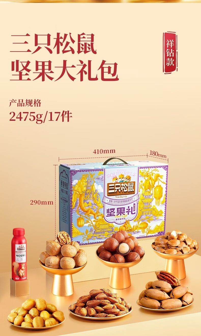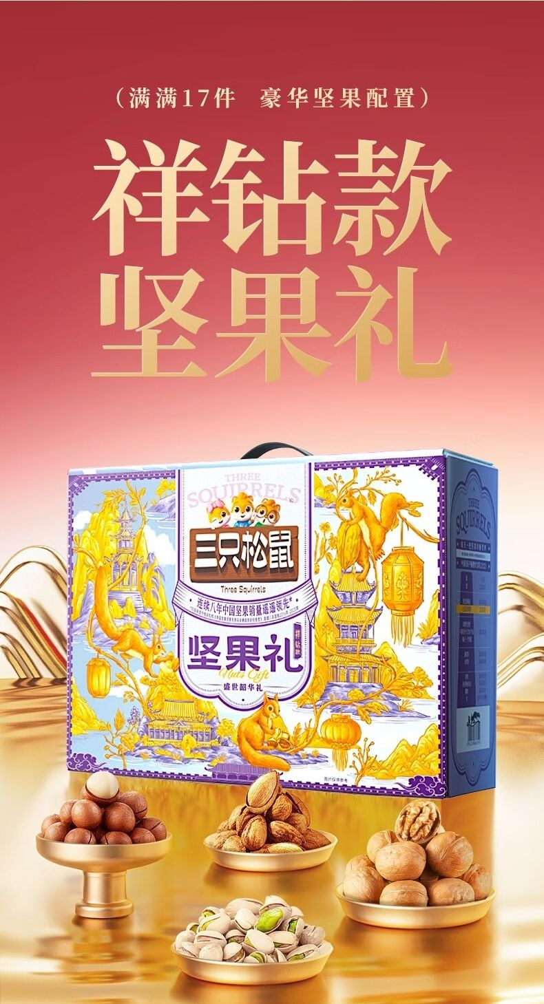 [Three Squirrels_Nut Gift Pack Xiangzuan Edition 2475g/17 Bags] New Year's Gift Box Snack Pack