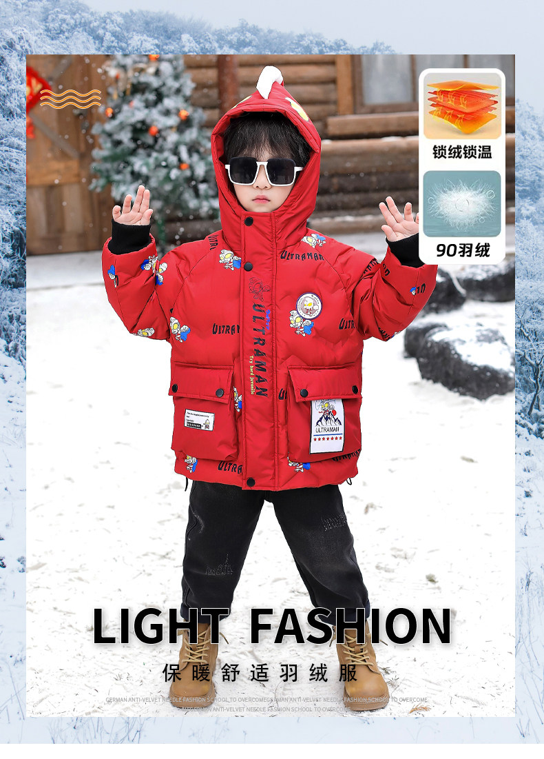 Dhwa Uk Co-Branded Children's New Year's Thick Coat 2026 New Model Boys' Ultraman down Jacket New Year Clothing