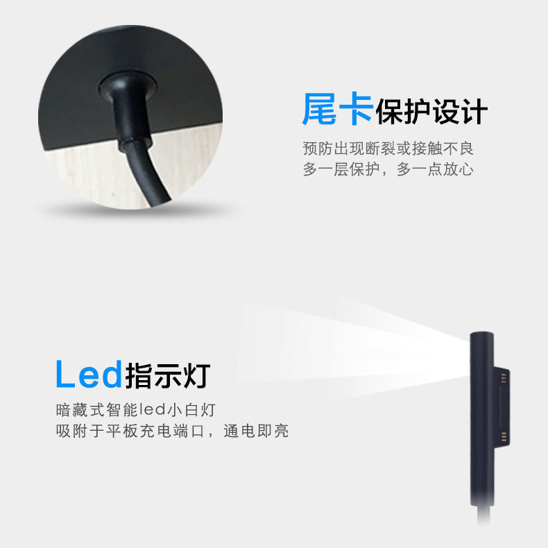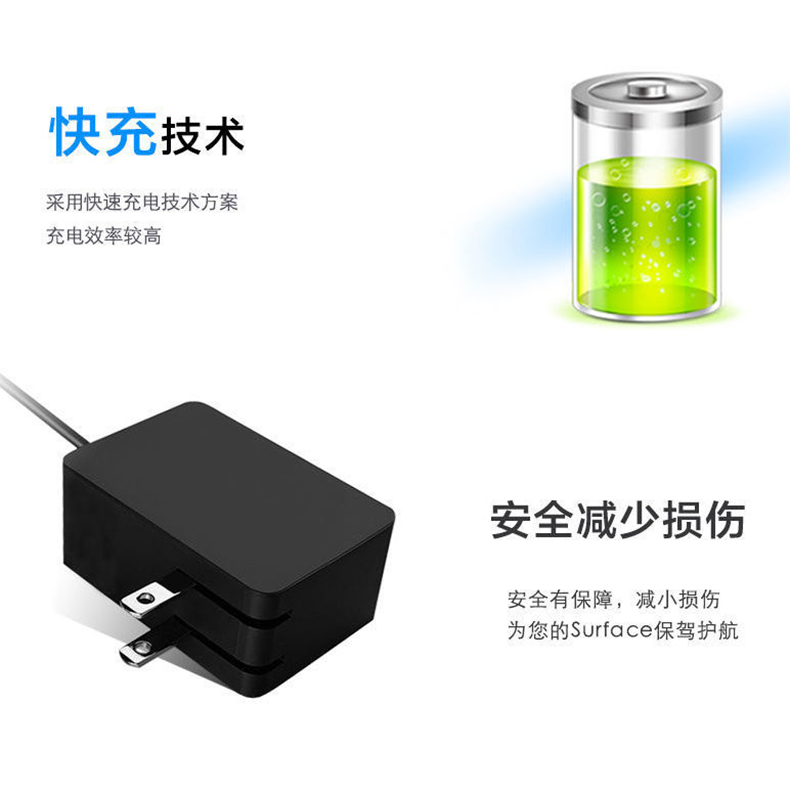Suitable for Microsoft Surface Pro3/4/5/6/7/X Charger Pro8/9 Laptop Go Power Adapter Tablet 48W Charging Head Laptop Charging Cable Fast Charging Cable