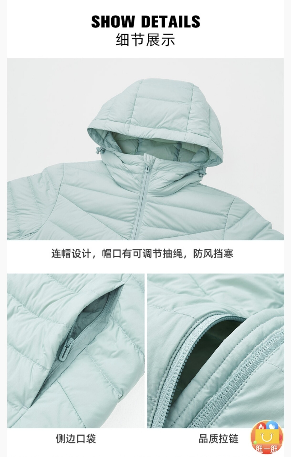 Main functions Keep warm,Windproof,Super light,Anti-spraying