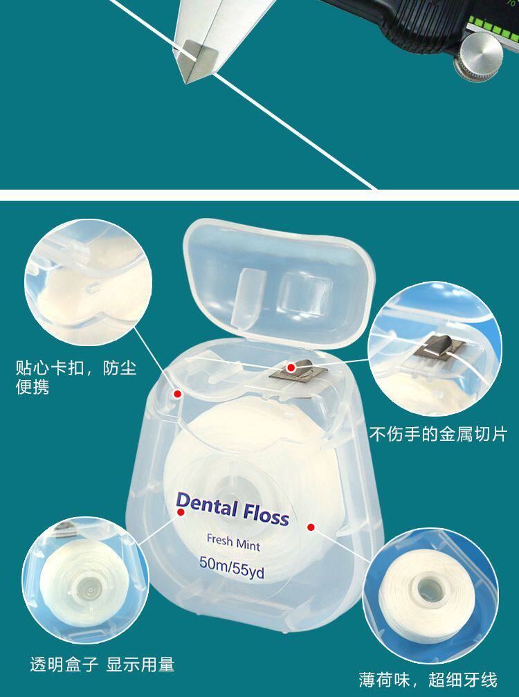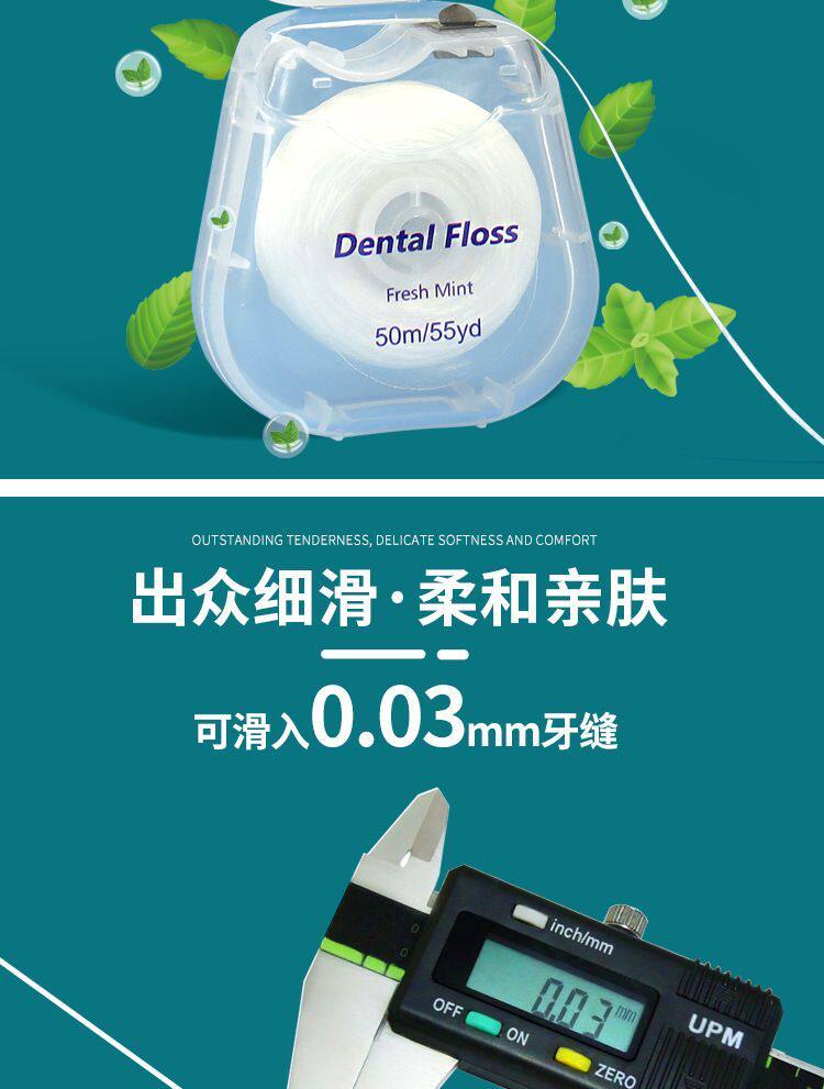 Ultra-Fine Dental Floss, Slightly Waxy, Mint-Flavored, for Cleaning between Teeth, Orthodontic Use, Medical Portable Floss Roll, 50m Floss Rolls, Mint Flavor