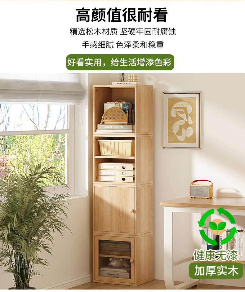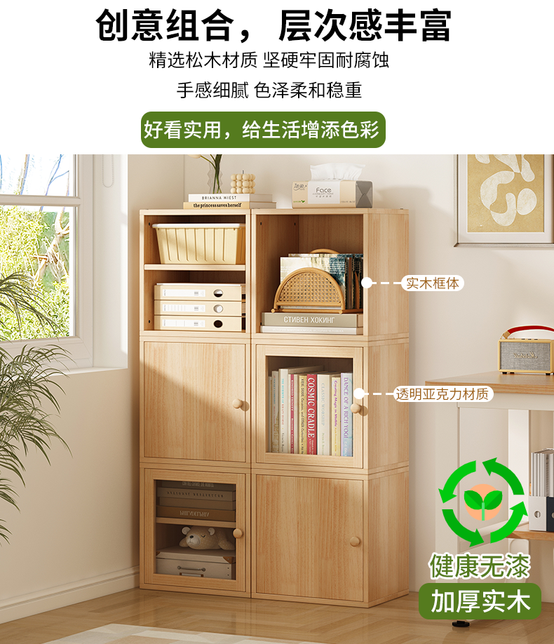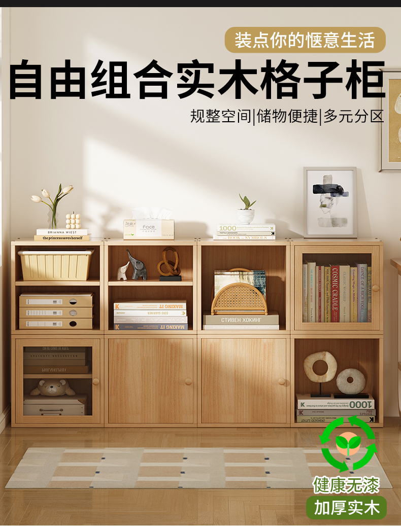 Solid Wood Bookshelf Student Living Room Display Rack Children's Simple Bookcase Free Combination Grid Cabinet Pine Wood Storage Shelf