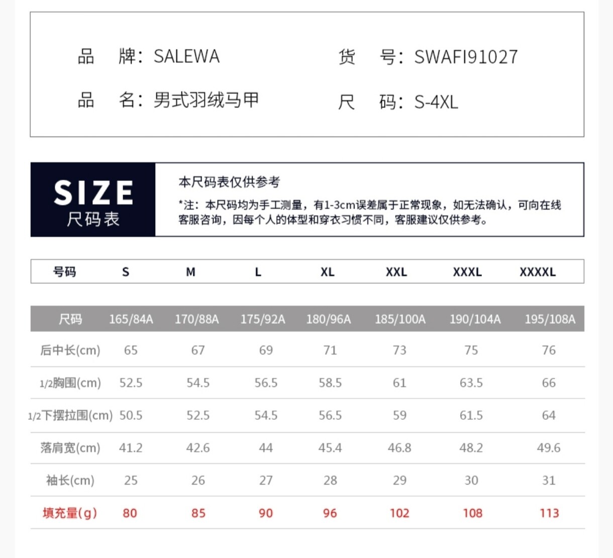 China (cm) 165 / 88-90 170 / 96-98 175 / 108-110 180 / 118-122 185 / 126-130