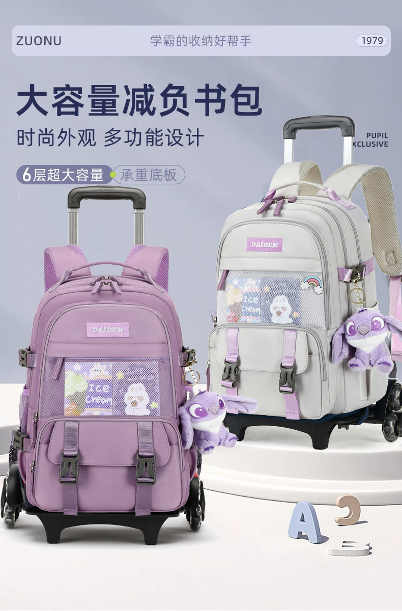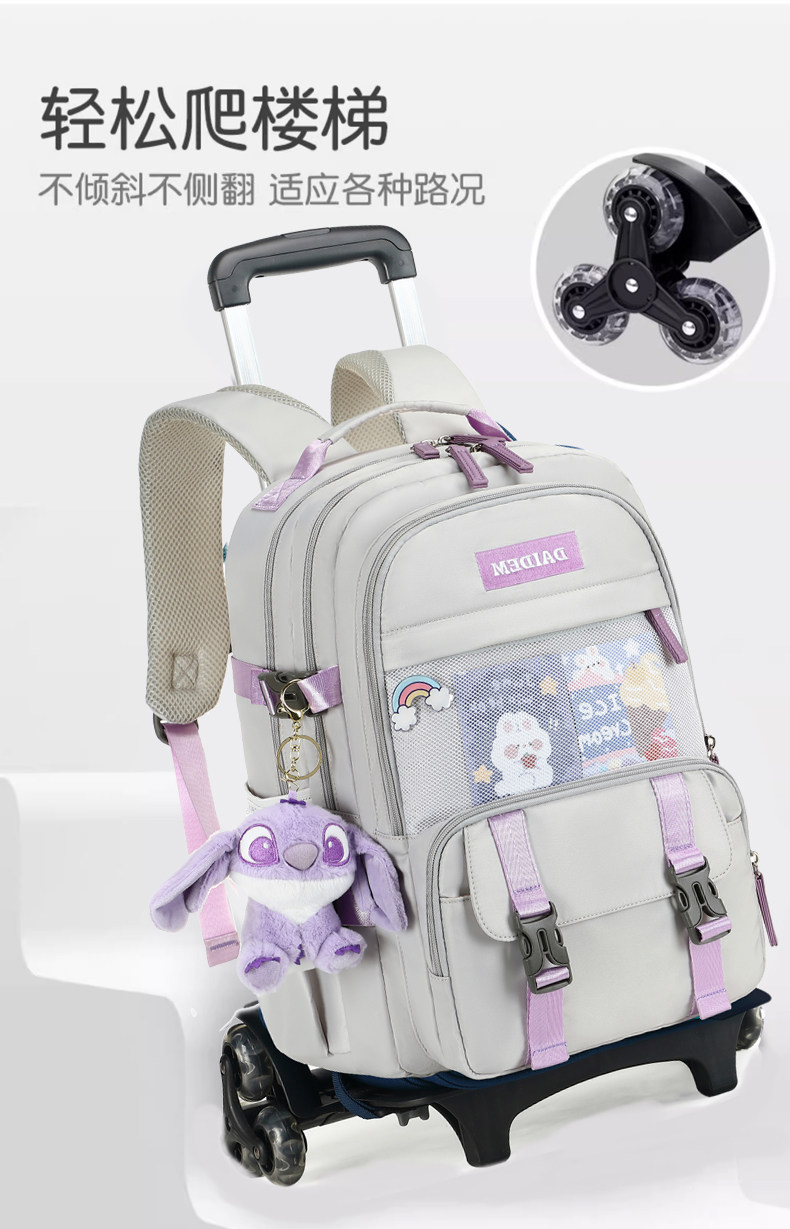 Primary and secondary school students' trolley schoolbags for girls in grades three to six can climb stairs for junior high school students with large capacity and pulleys