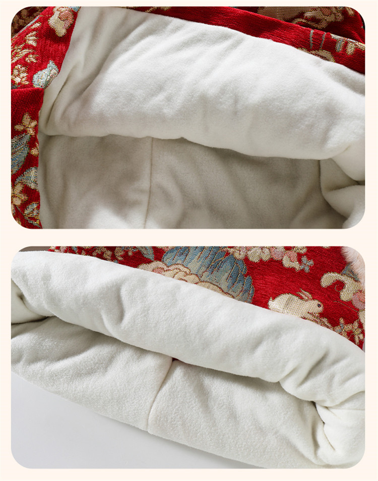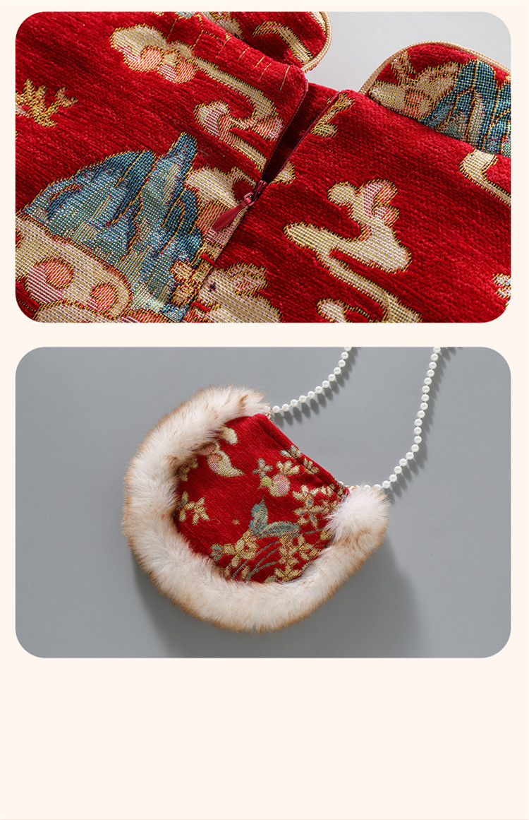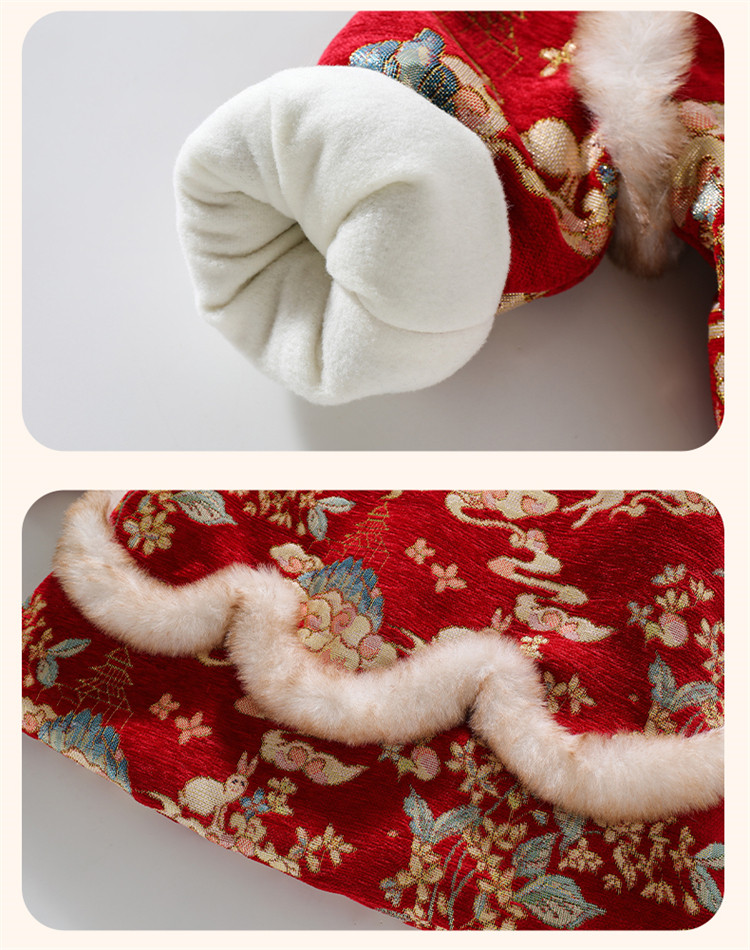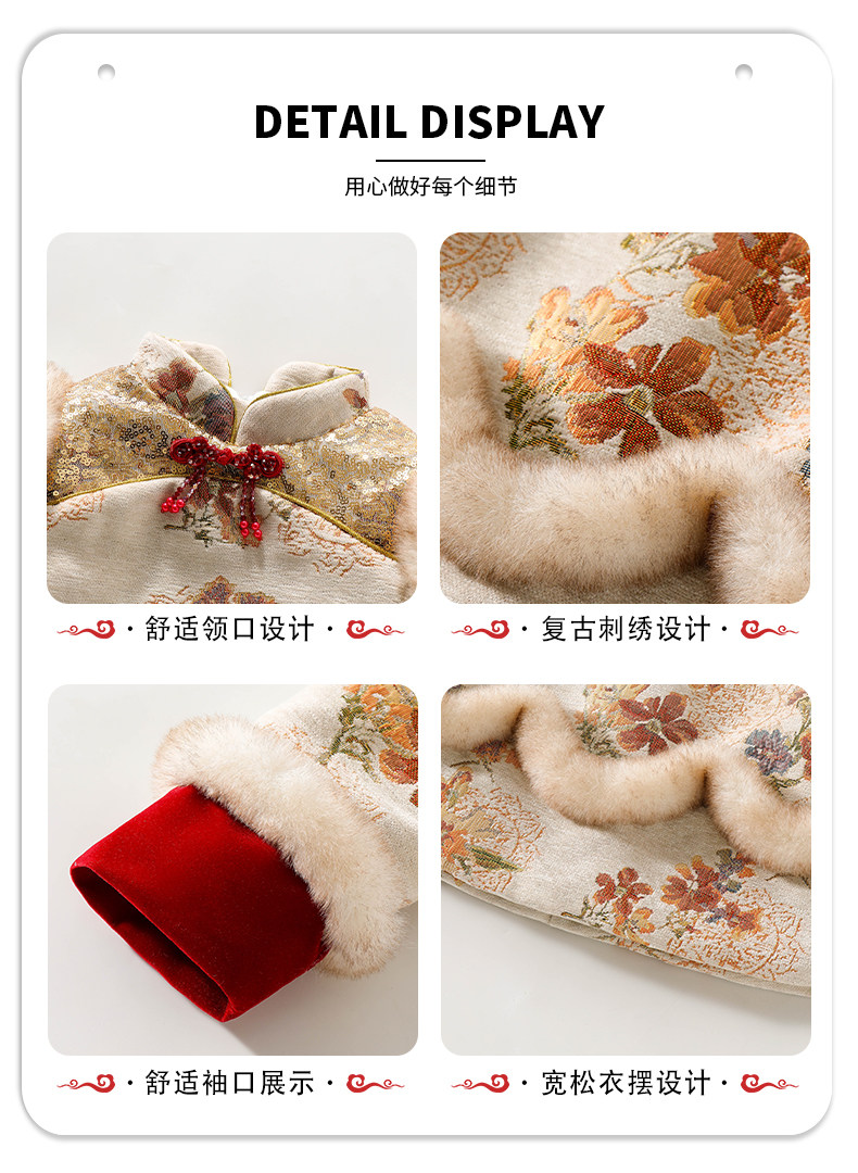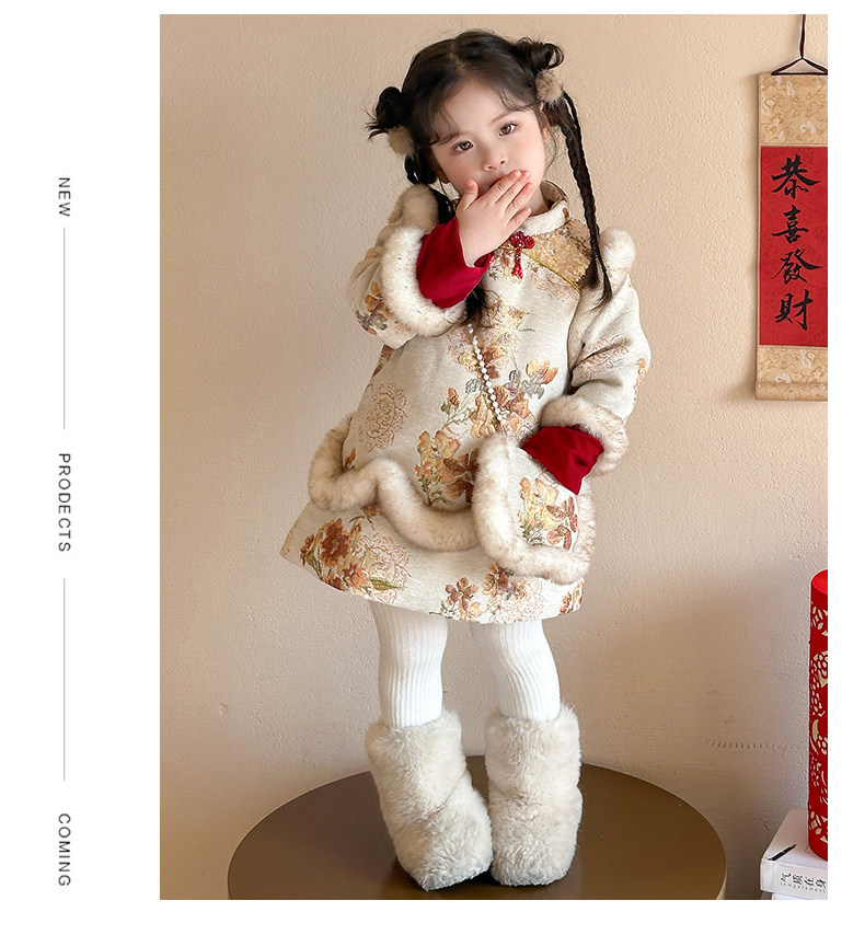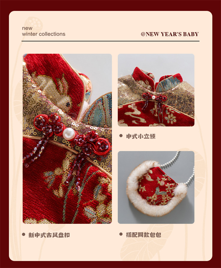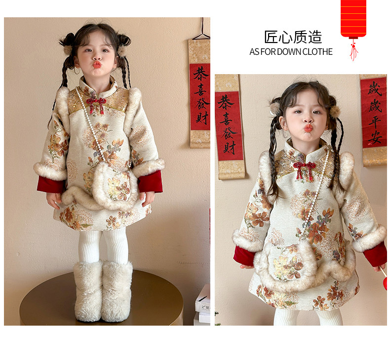 Girls' Fleece-Lined Thickened Cheongsam Dress 2024 Winter New Style Children's Festive Red New Year Outfit