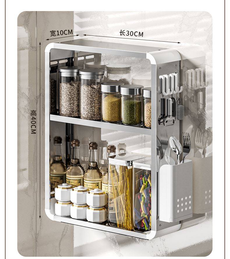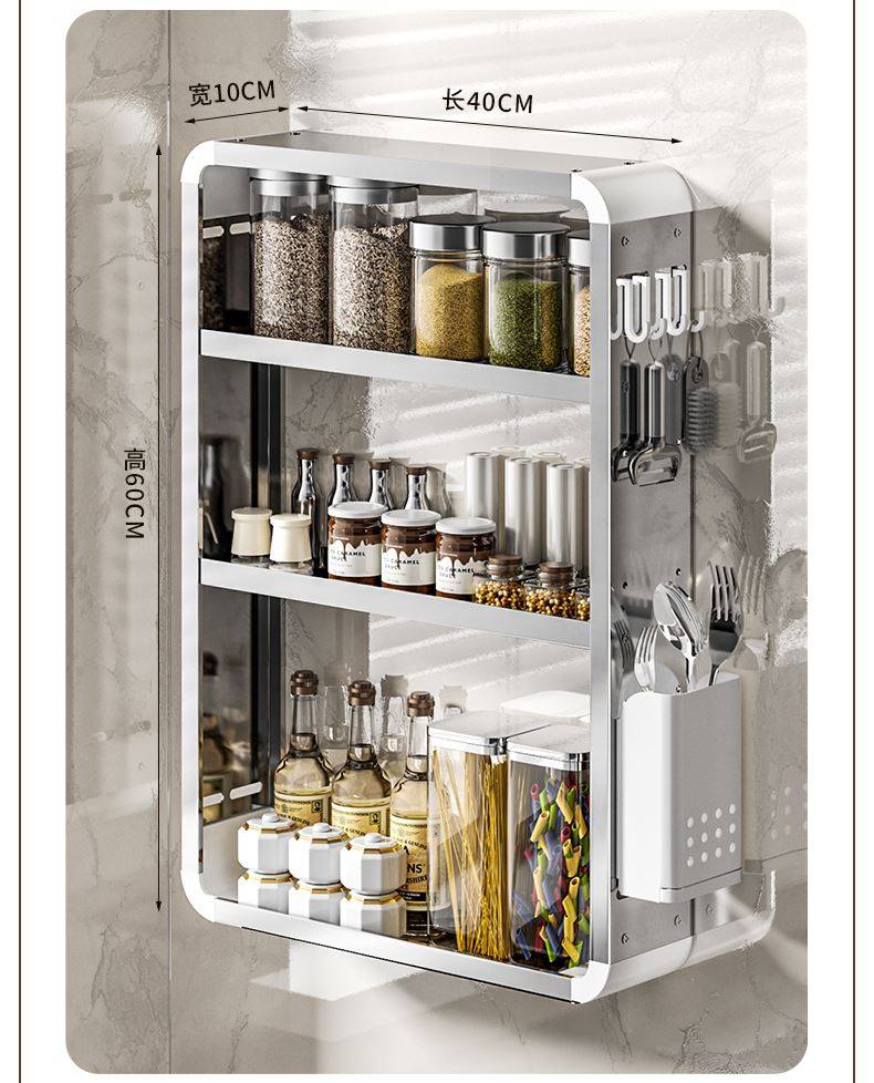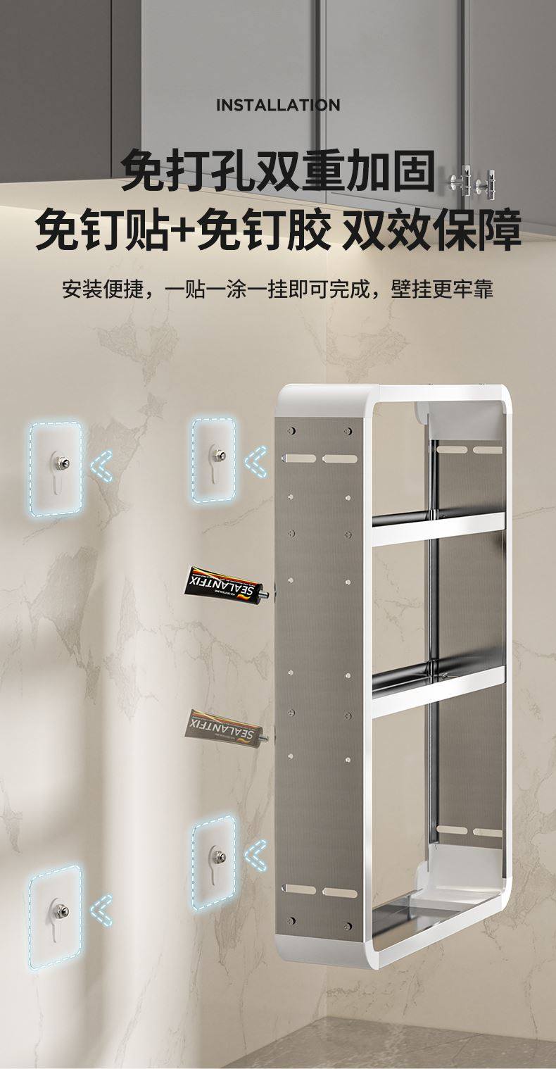 Jiejin stainless steel kitchen condiment storage rack wall hanging no punching wall storage condiment storage rack multi-functional