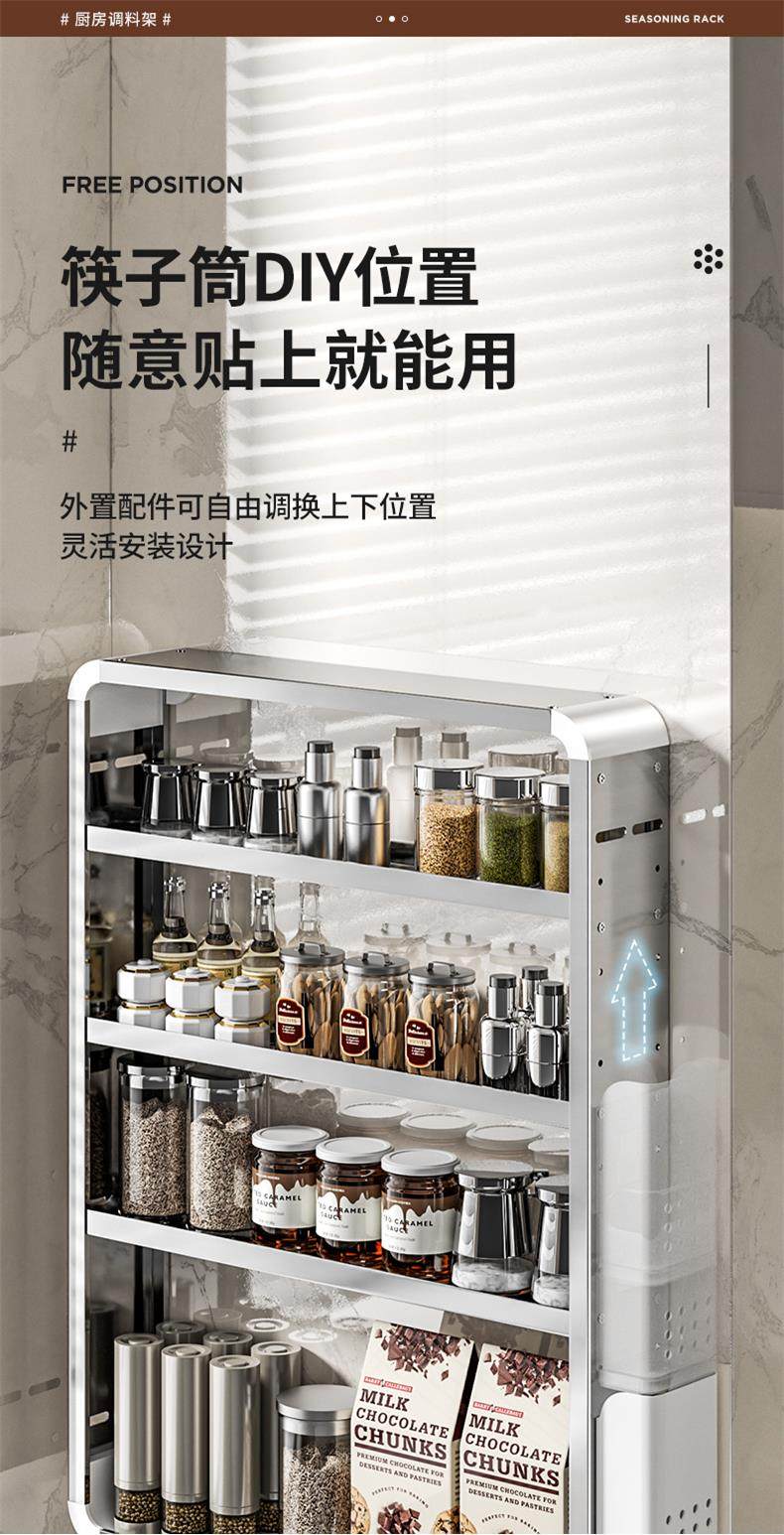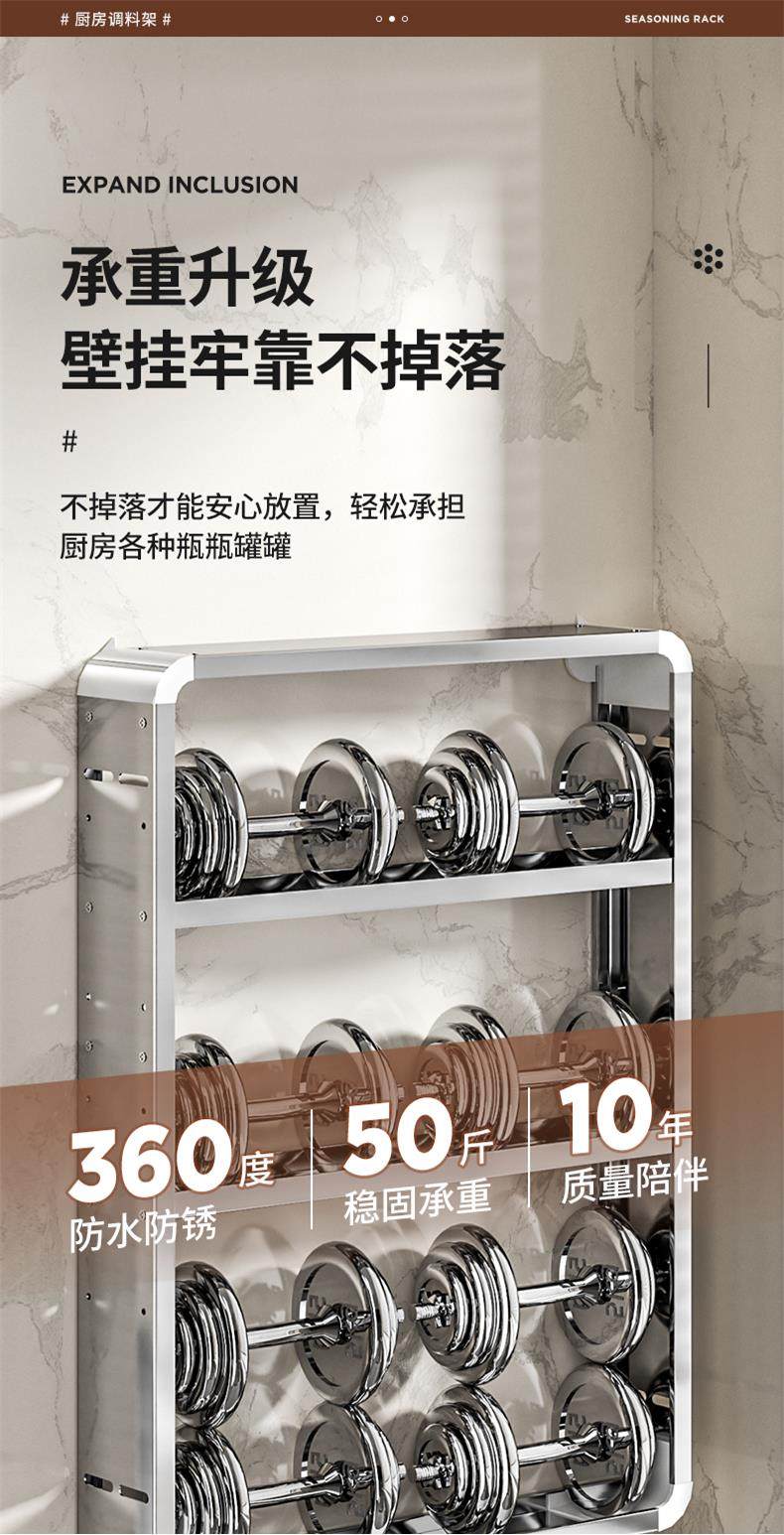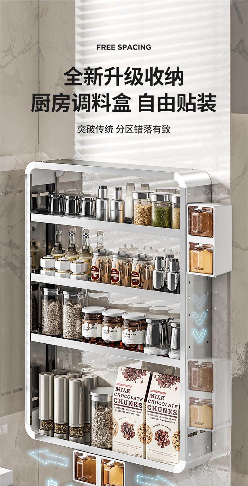 Jiejin stainless steel kitchen condiment storage rack wall hanging no punching wall storage condiment storage rack multi-functional