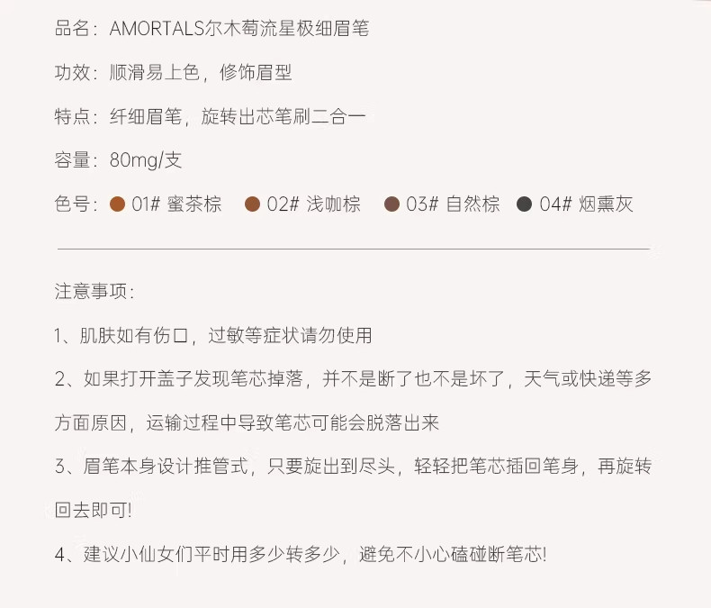 Ermu grape extremely thin eyebrow pencil waterproof and long-lasting, not decolorized, wild roots and clear roots for men and women makeup artists