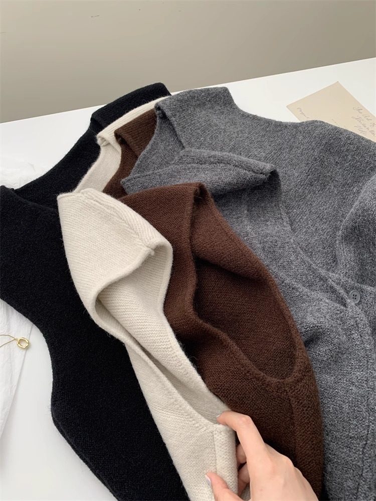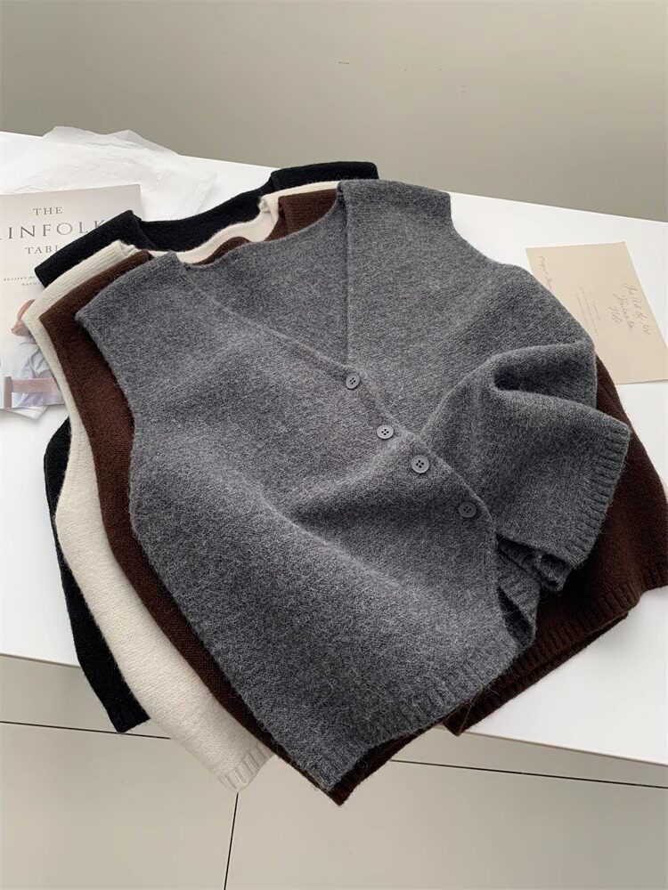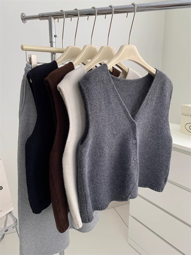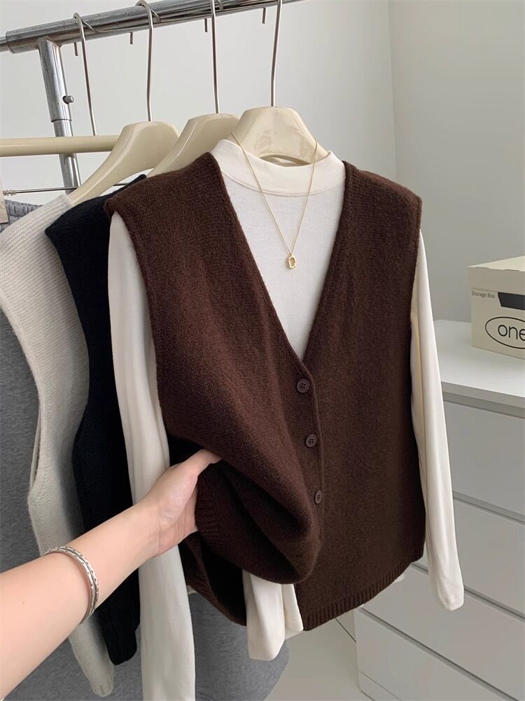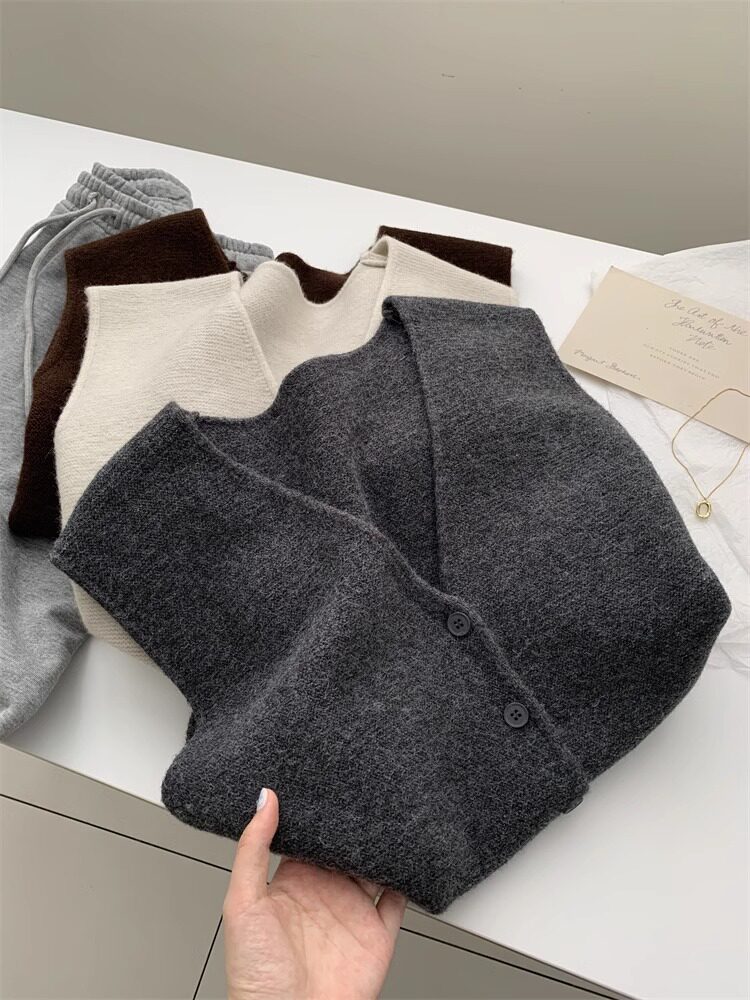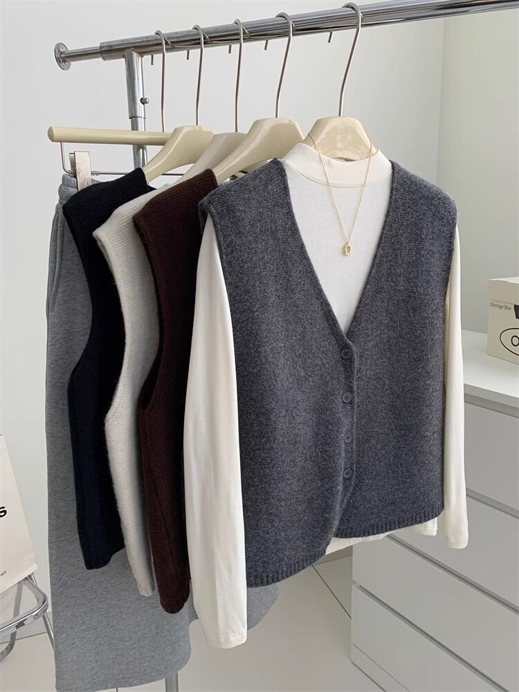 Soft and waxy high-end v-neck sweater cardigan vest for women autumn and winter layered sweater sleeveless outer top