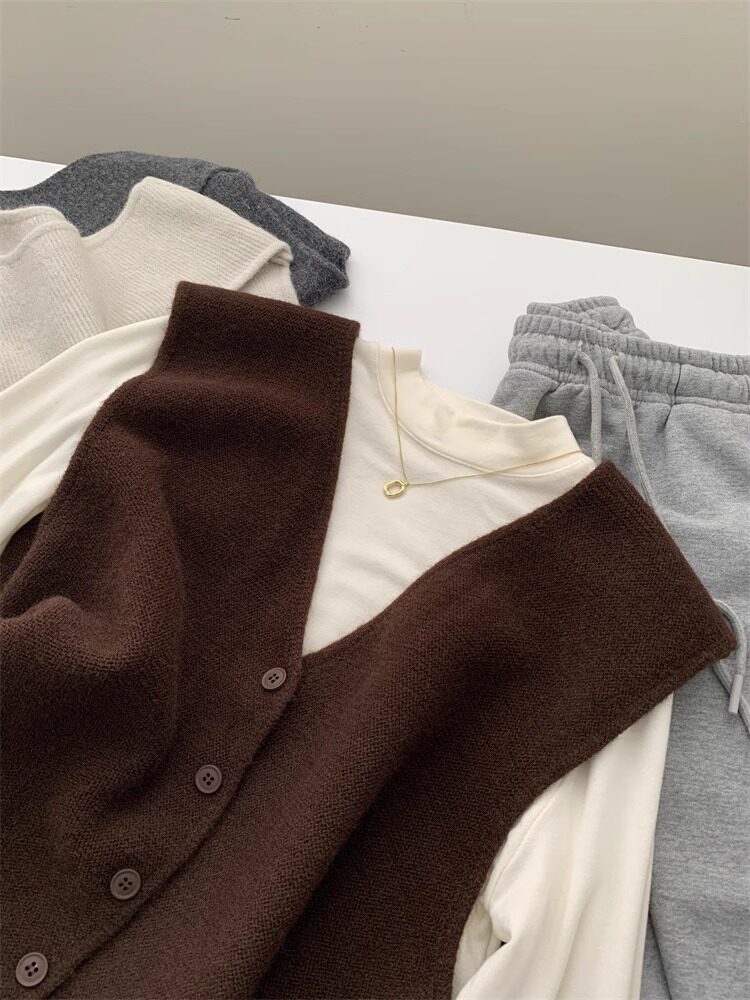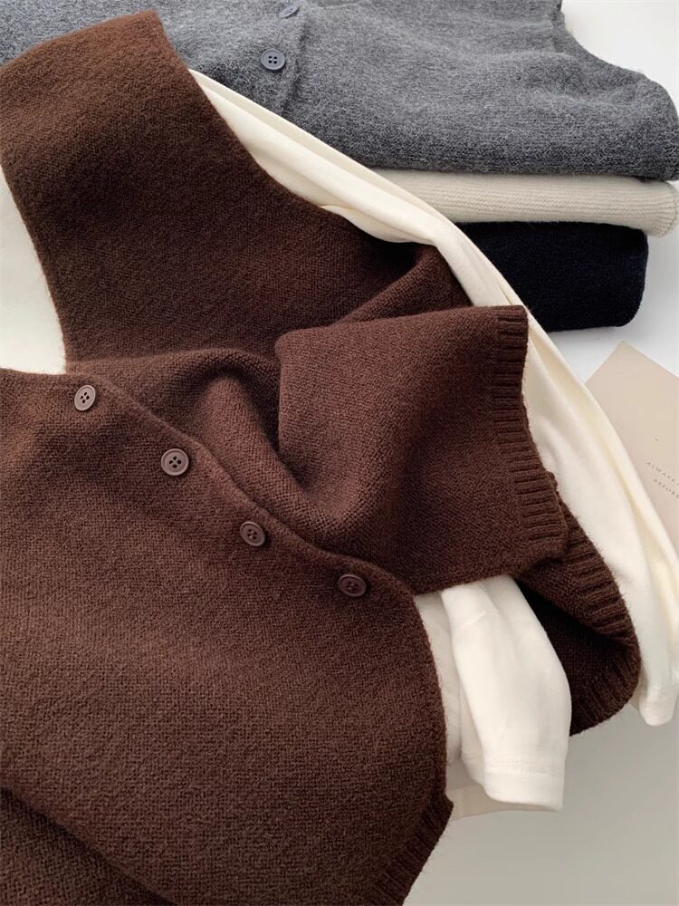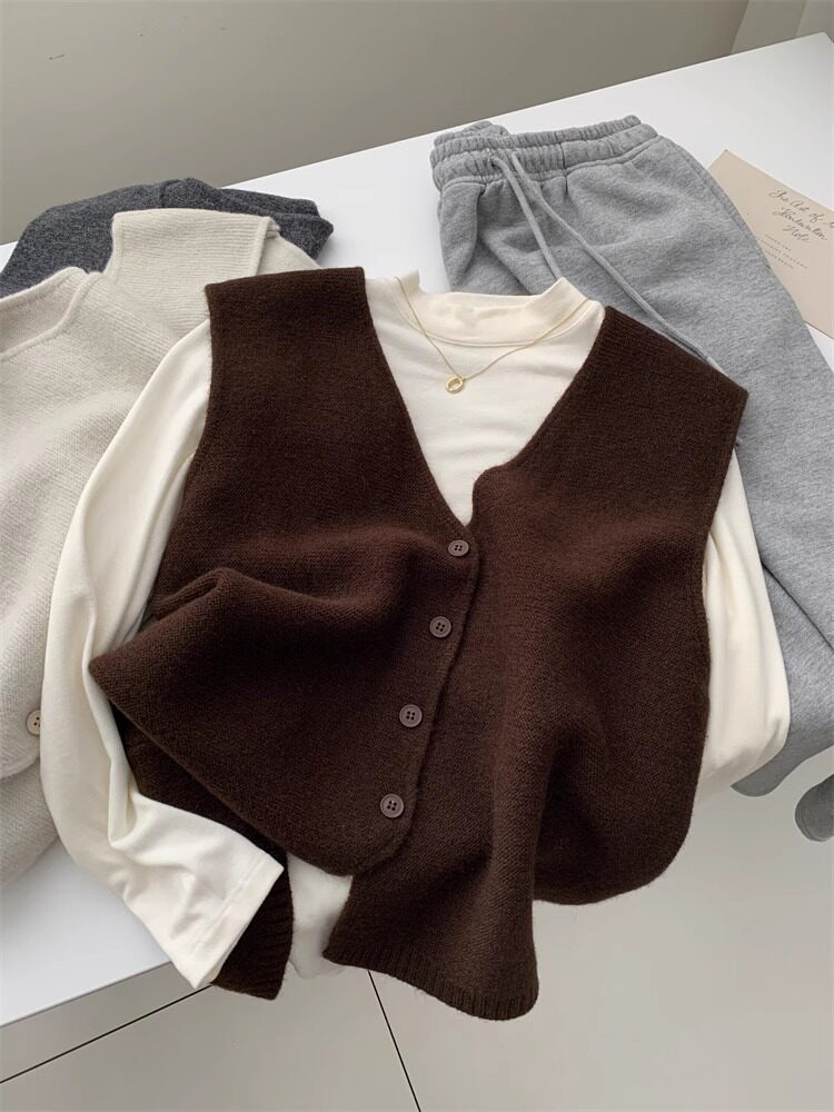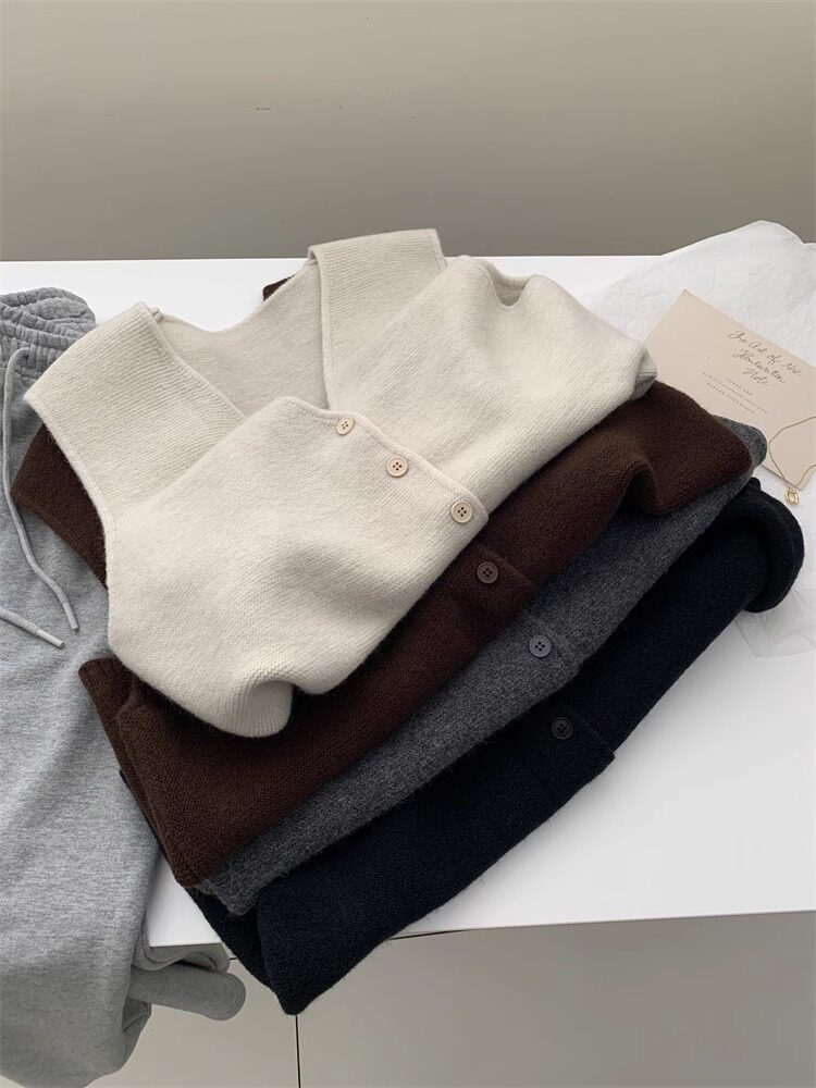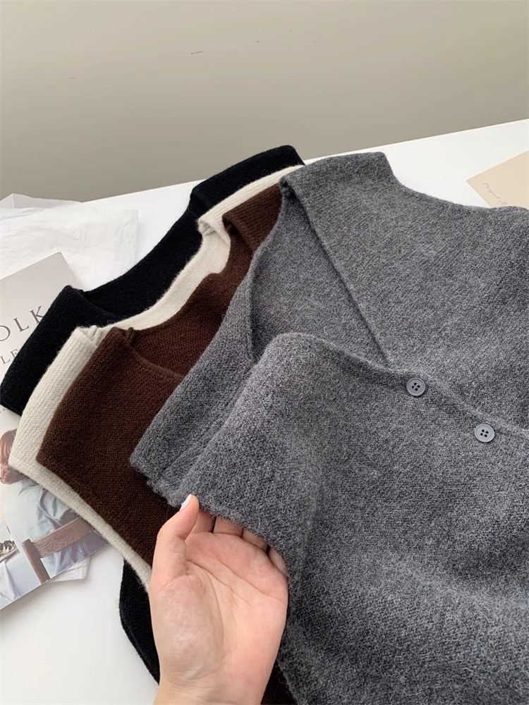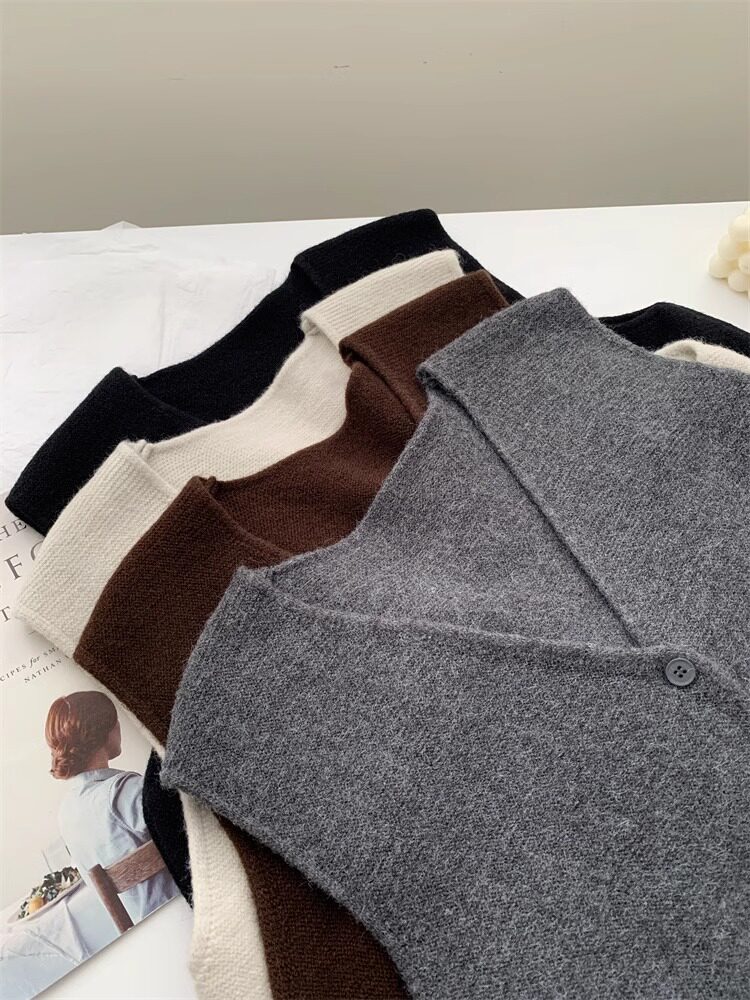 Soft and waxy high-end v-neck sweater cardigan vest for women autumn and winter layered sweater sleeveless outer top