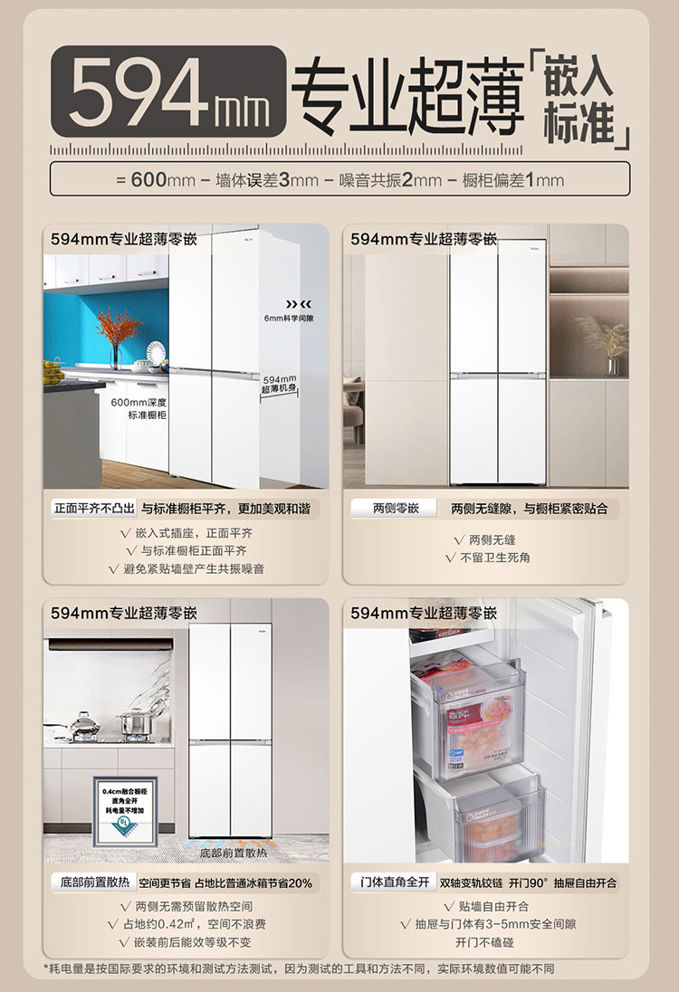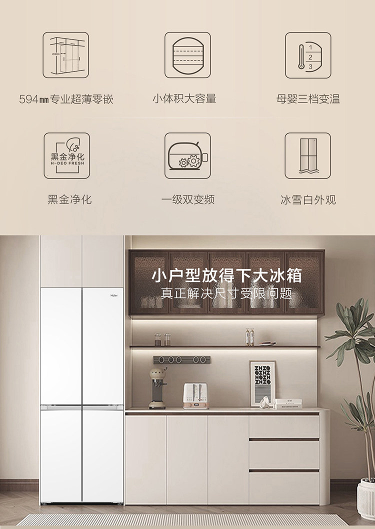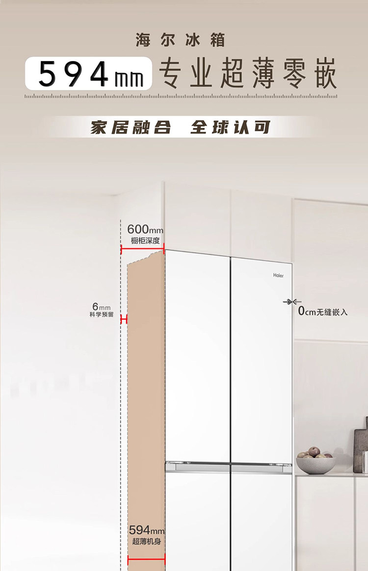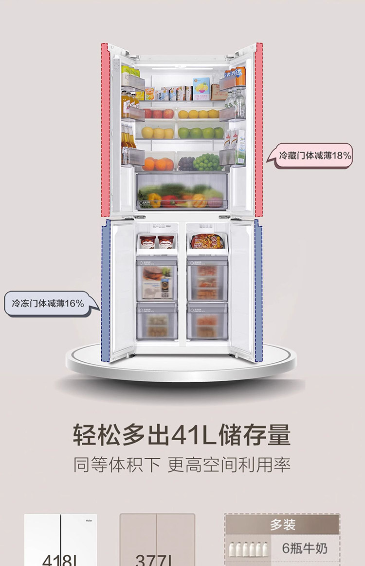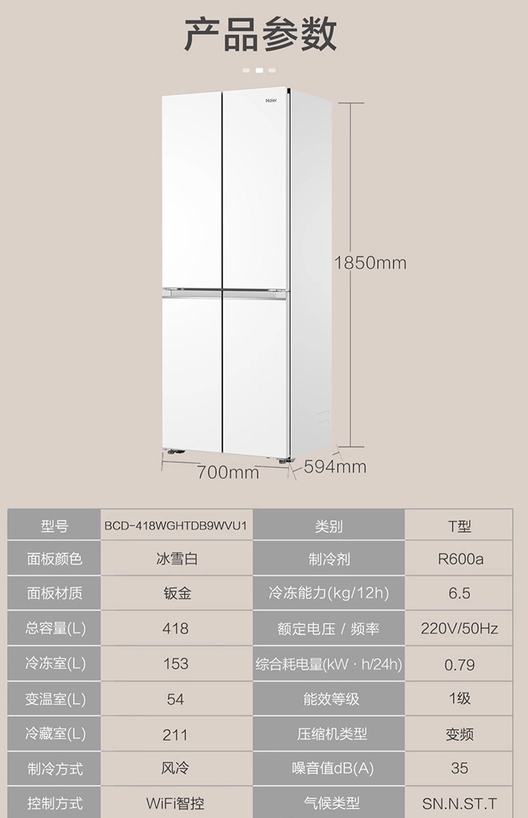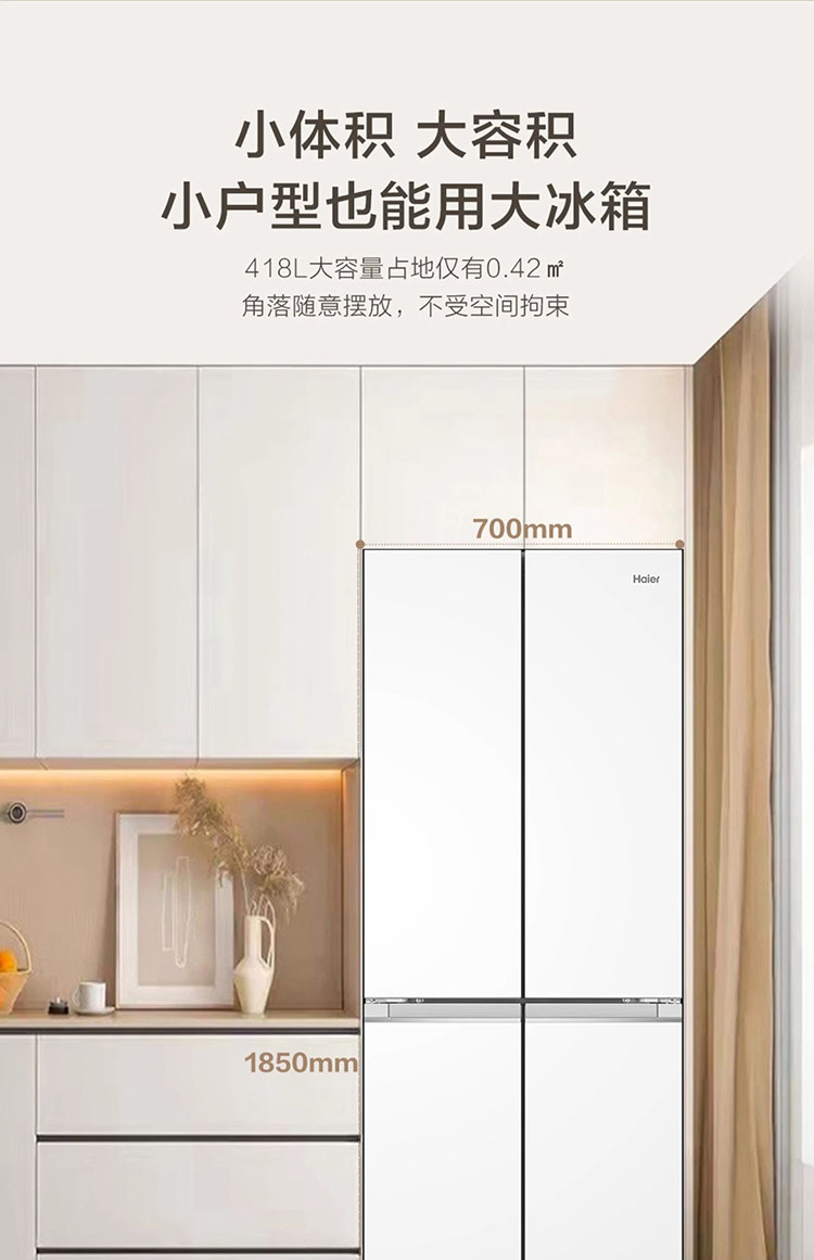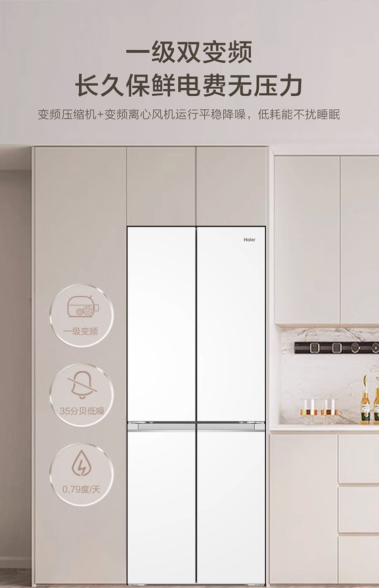 Haier BCD-418WGHTDB9WVU1 double-open four-door ultra-thin zero-embedded household air-cooled frost-free refrigerator