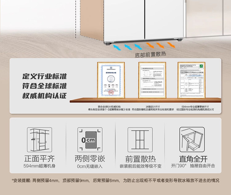 Heat dissipation distance on both sides Zero distance embedding (0cm margin <2cm)