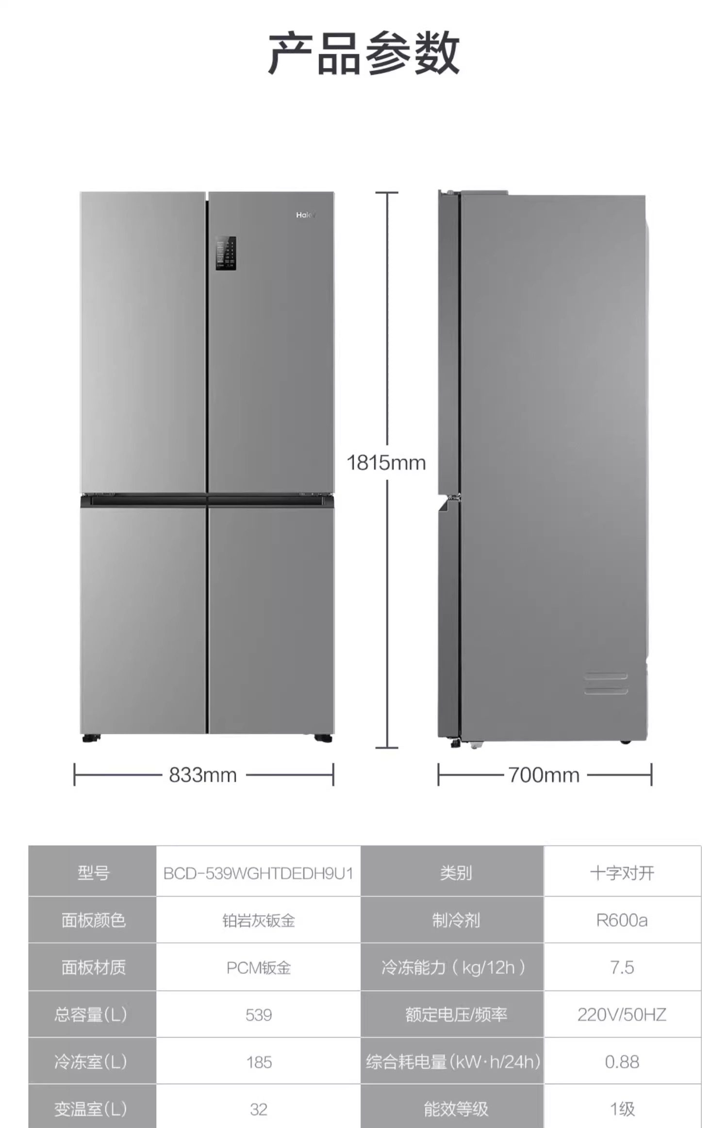 Haier BCD-539WGHTDEDH9U1 four-door first-class household air-cooled frost-free ultra-thin refrigerator