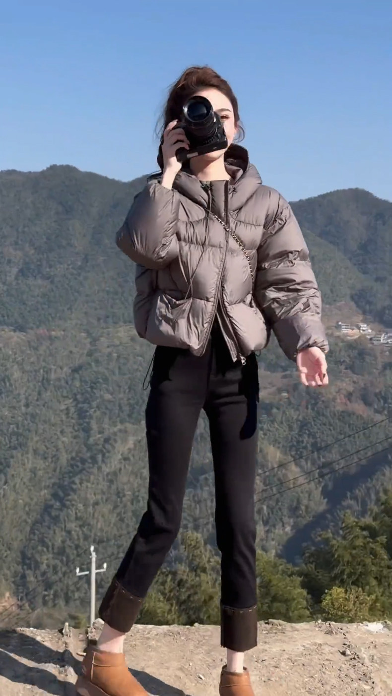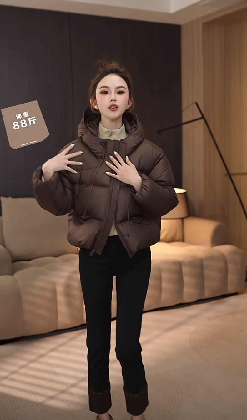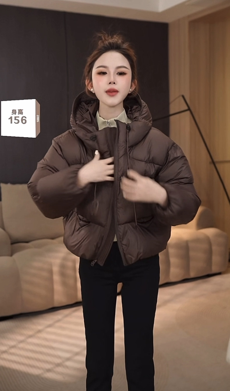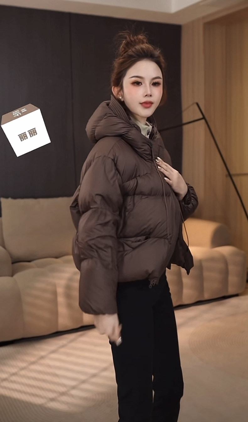 Jasmine haute couture thickened down cotton coat for women winter fluffy hooded short bread coat for small people
