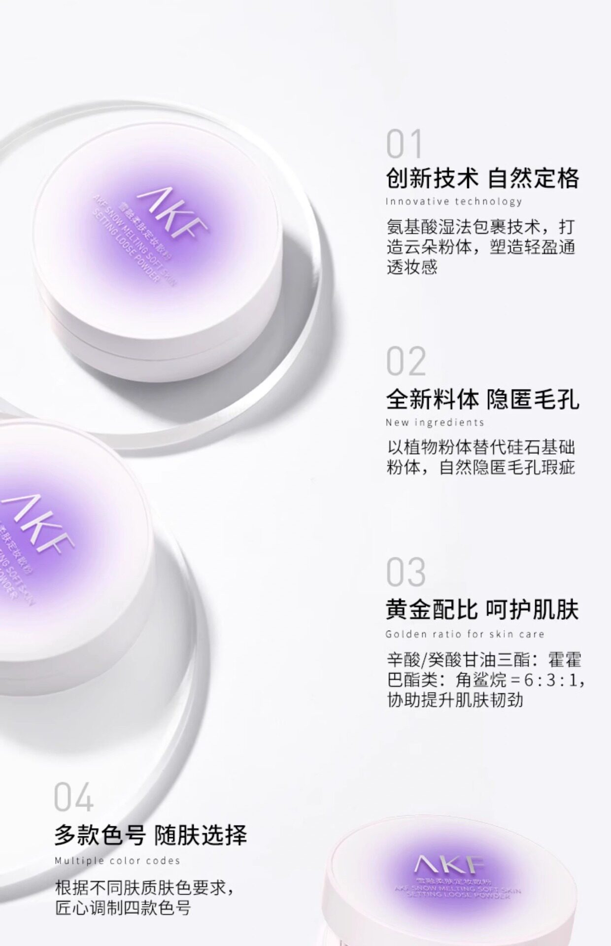 Akf Loose Powder New Snow Melt Setting Loose Powder Honey Powder Long-Lasting Makeup Snow Melt Softening Official Flagship Store Not Easy to Remove Makeup