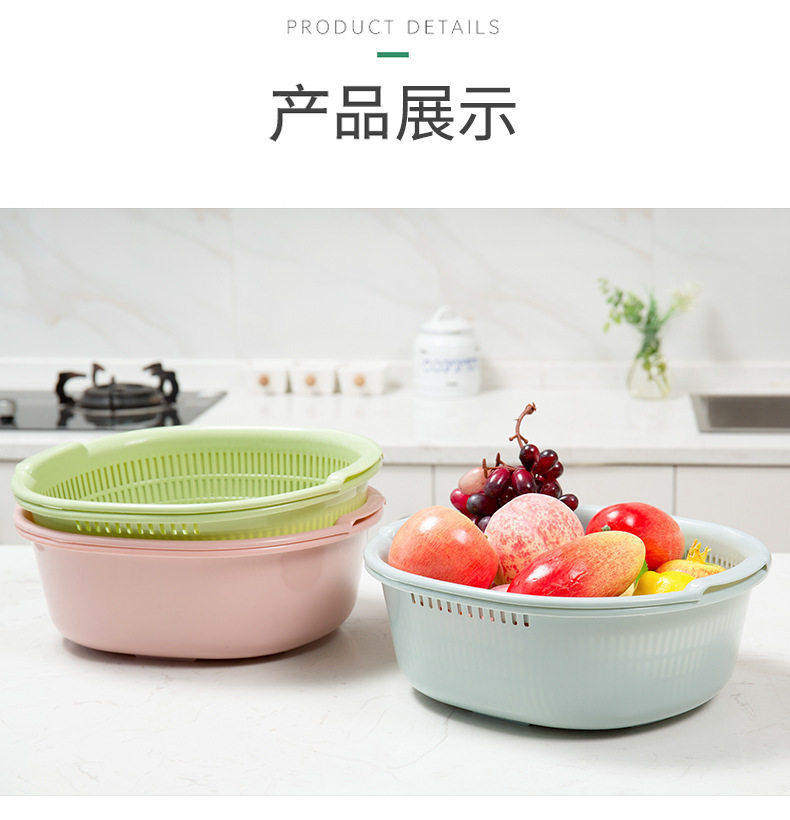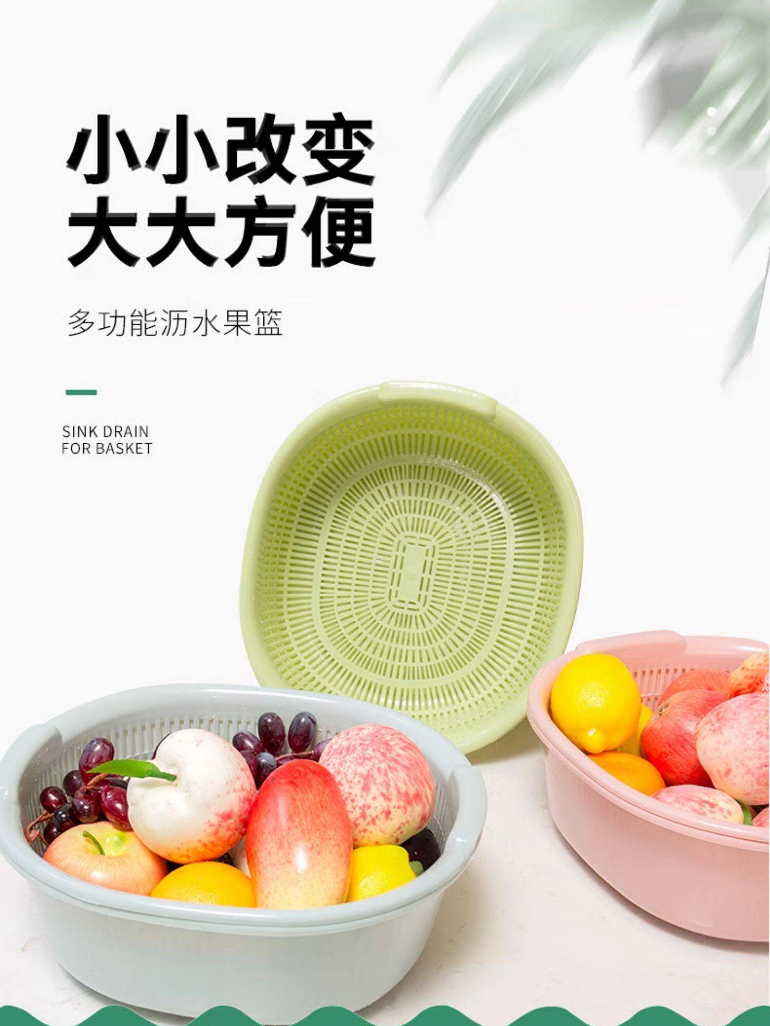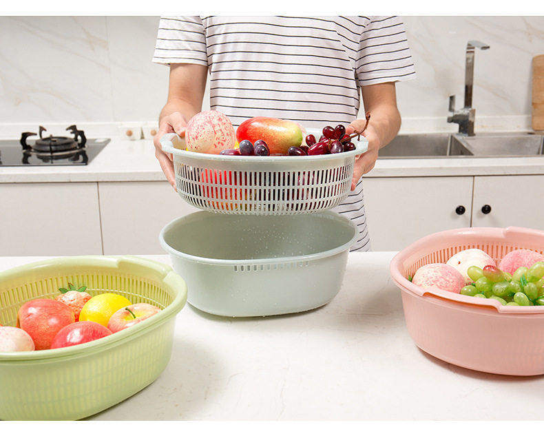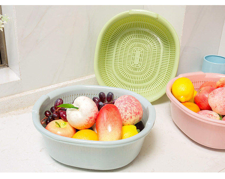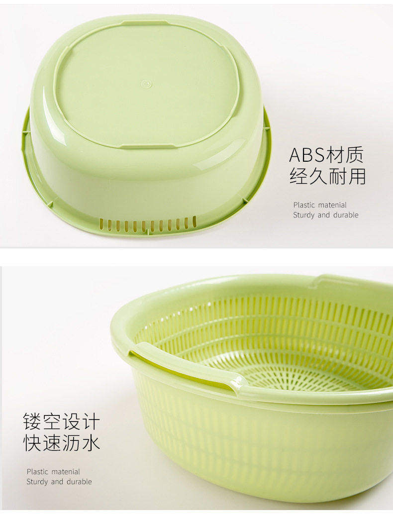 Double-Layer Vegetable Washing Basin with Draining Basket, Kitchen Fruit Washing Tray, Living Room Household Vegetable Washing Basin, Vegetable Basket with Draining Basket