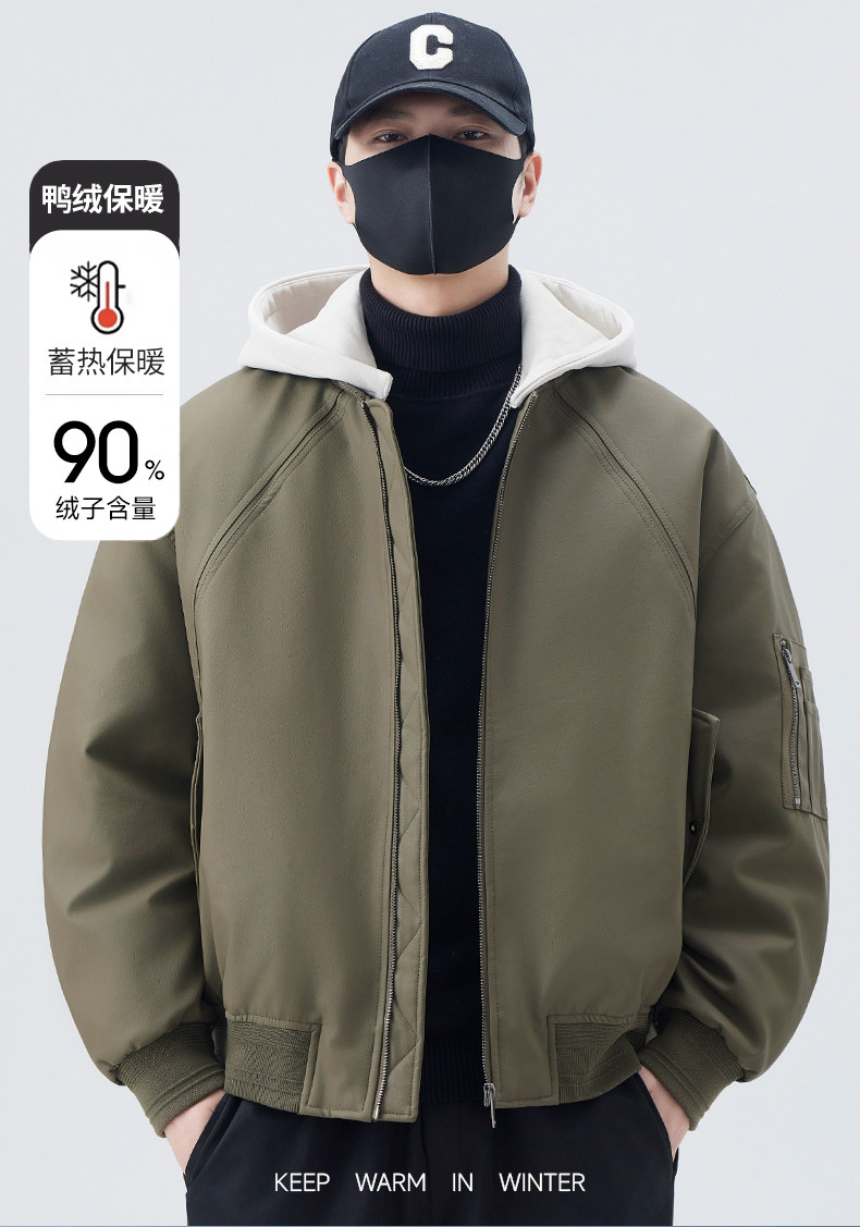 90 White Duck Down Down Jacket Men's Autumn and Winter 2025 New Stand Collar Casual Workwear Leather Jacket Men's Baseball Jacket