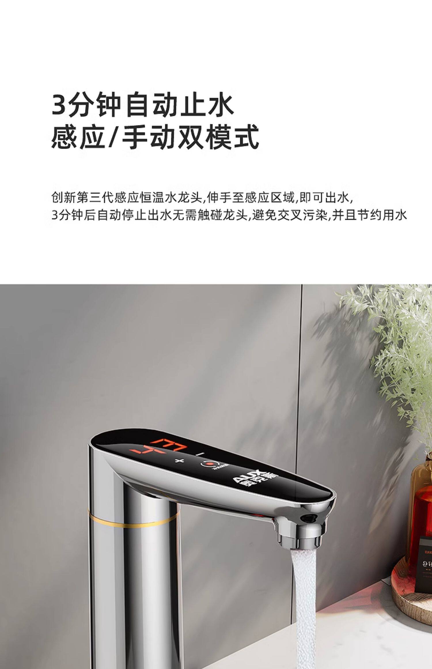 Aux Electric Hot Water Faucet for Home Use, Sensor-Controlled, Variable Frequency, Instant Heating for Kitchen and Bathroom, Tap Water Heating