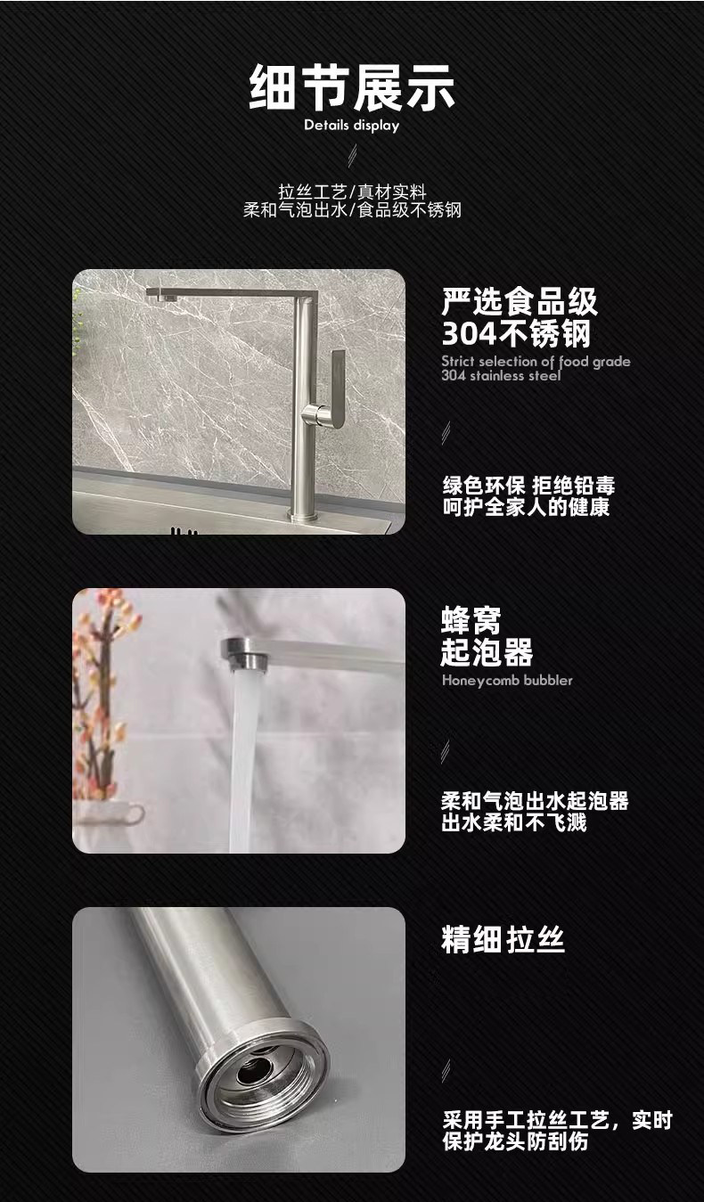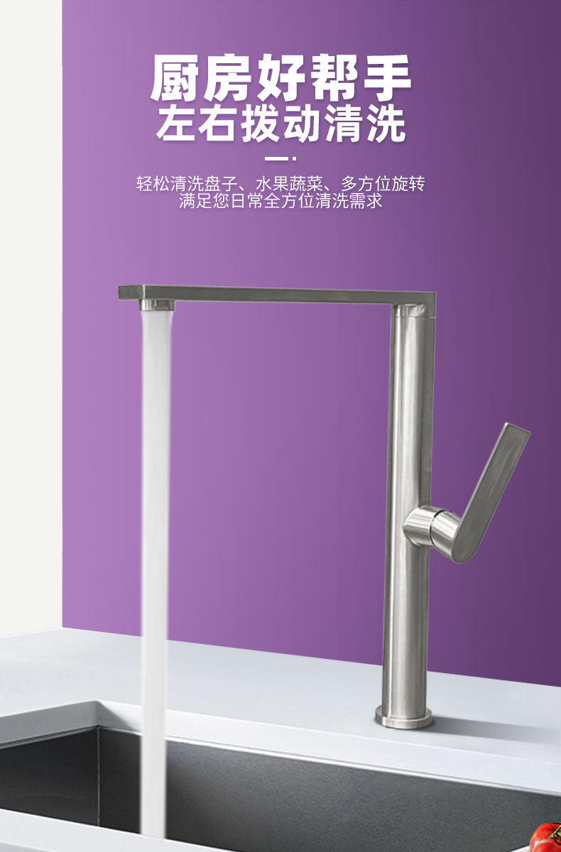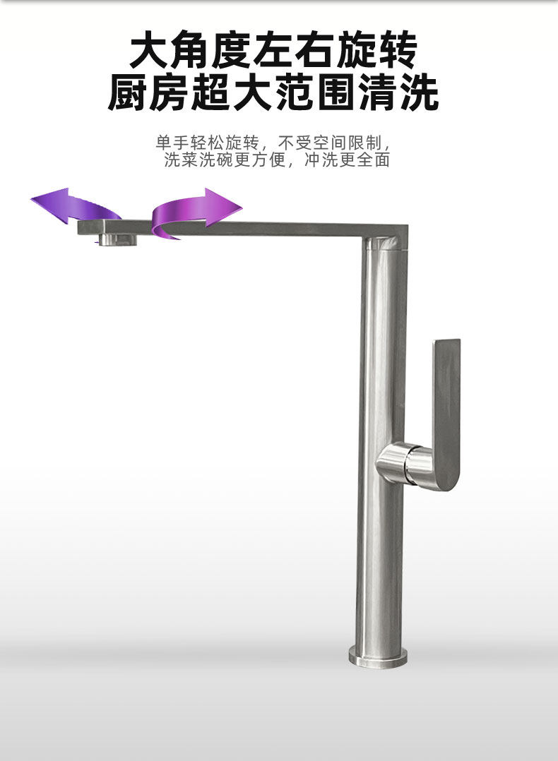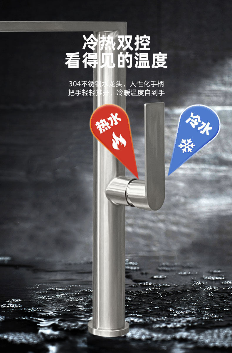 304 Stainless Steel Kitchen Hot and Cold Faucet Sink Anti-Splash Basin Dishwashing Basin Pool Rotating Outlet Faucet