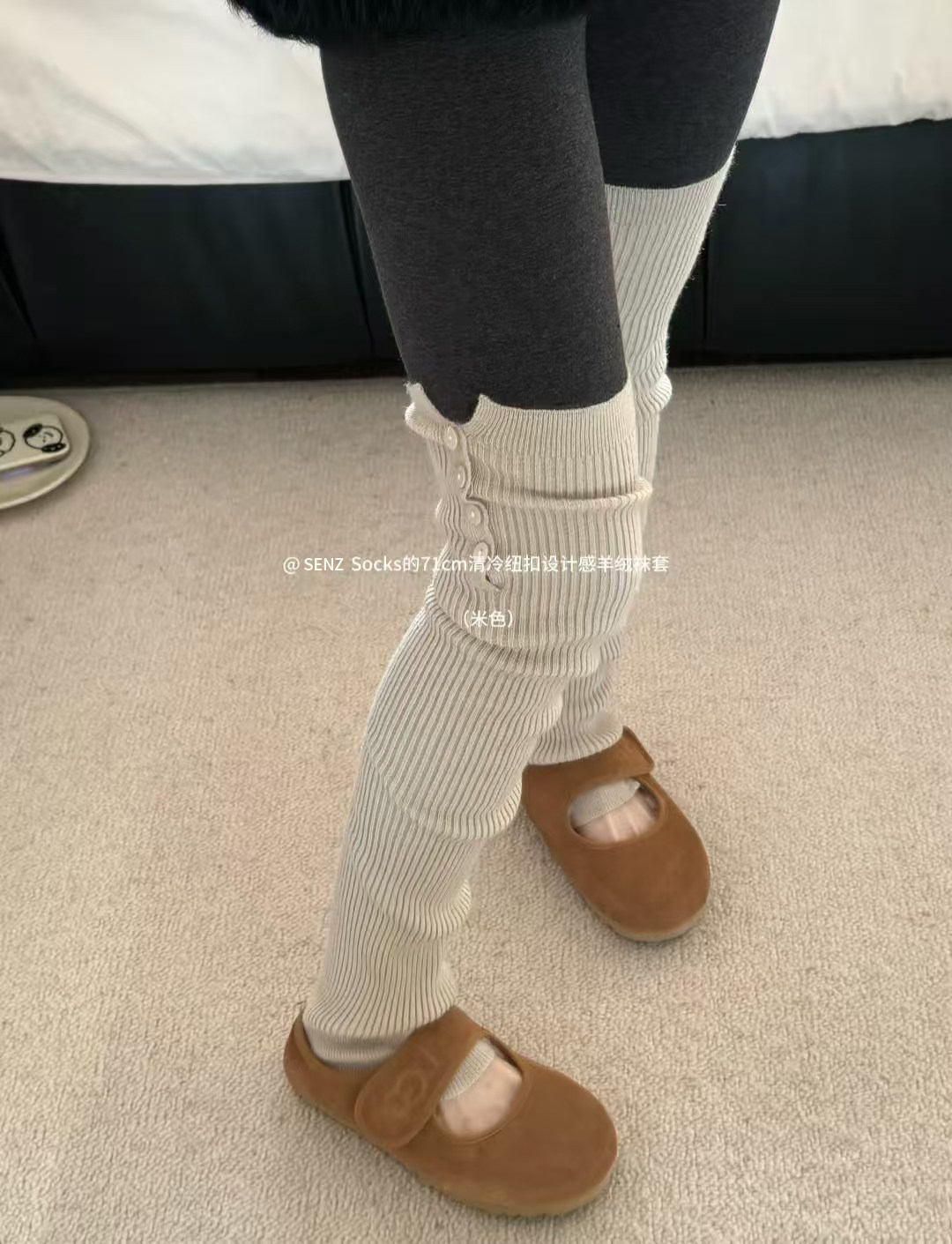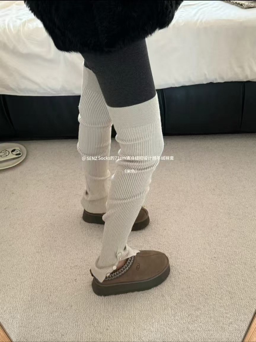 White Knee-High Socks for Women, Autumn and Winter Slouch Socks with Buttoned Slit, Long Tube Socks for Yoga, Slimming Calf Sleeves for Winter