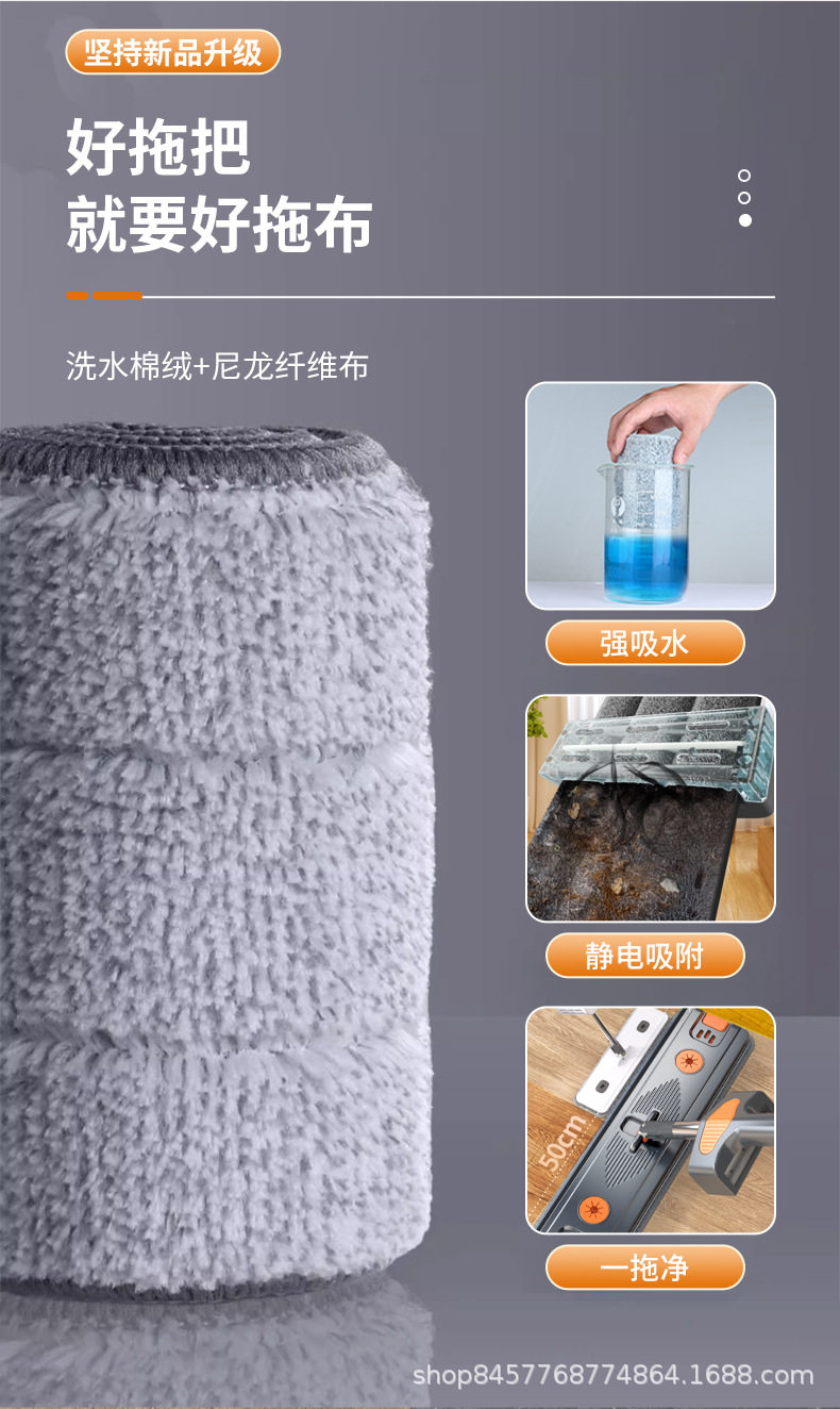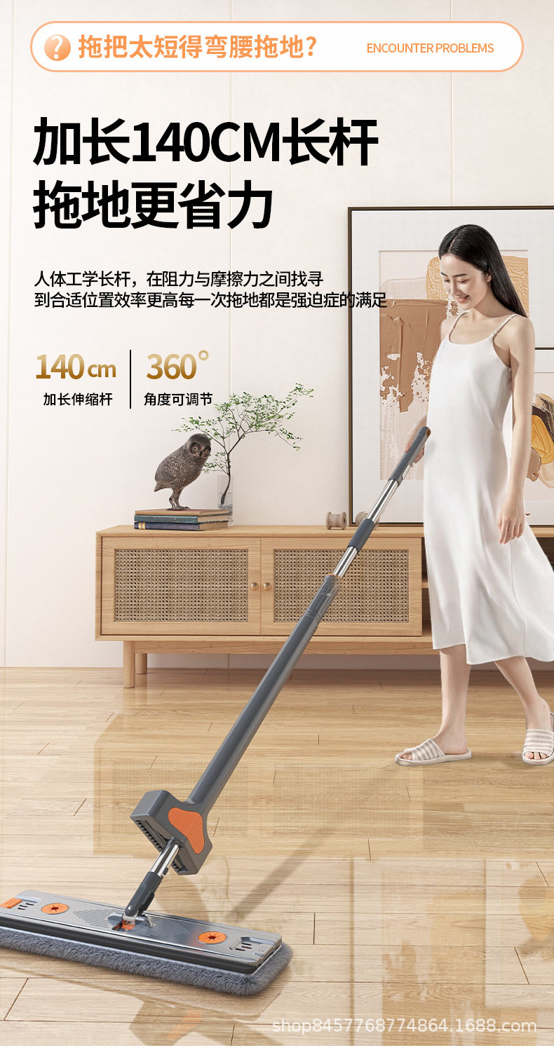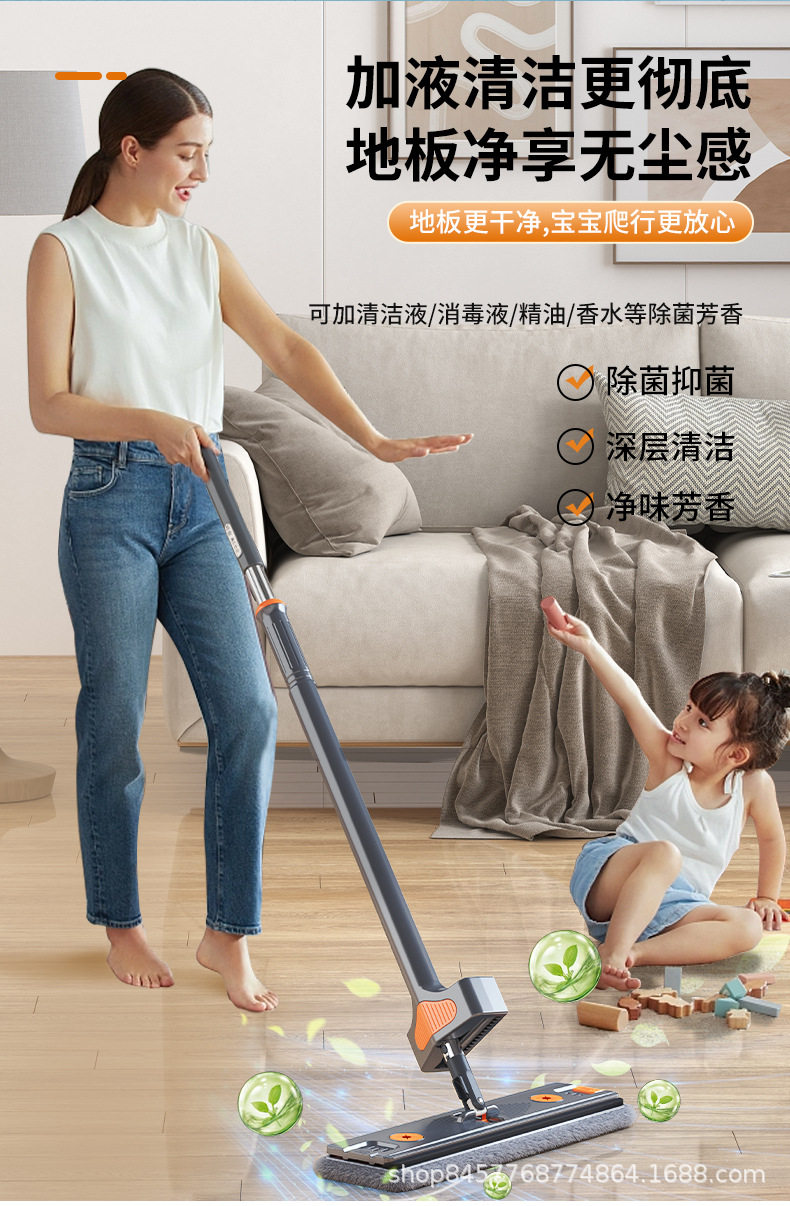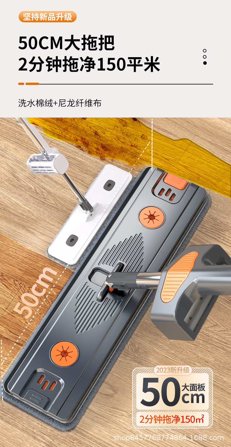 German Seiko Hand-Washable Household Mop, Lazy Mop, Water-Absorbent Dry and Wet Dual-Use Flat Mop Artifact