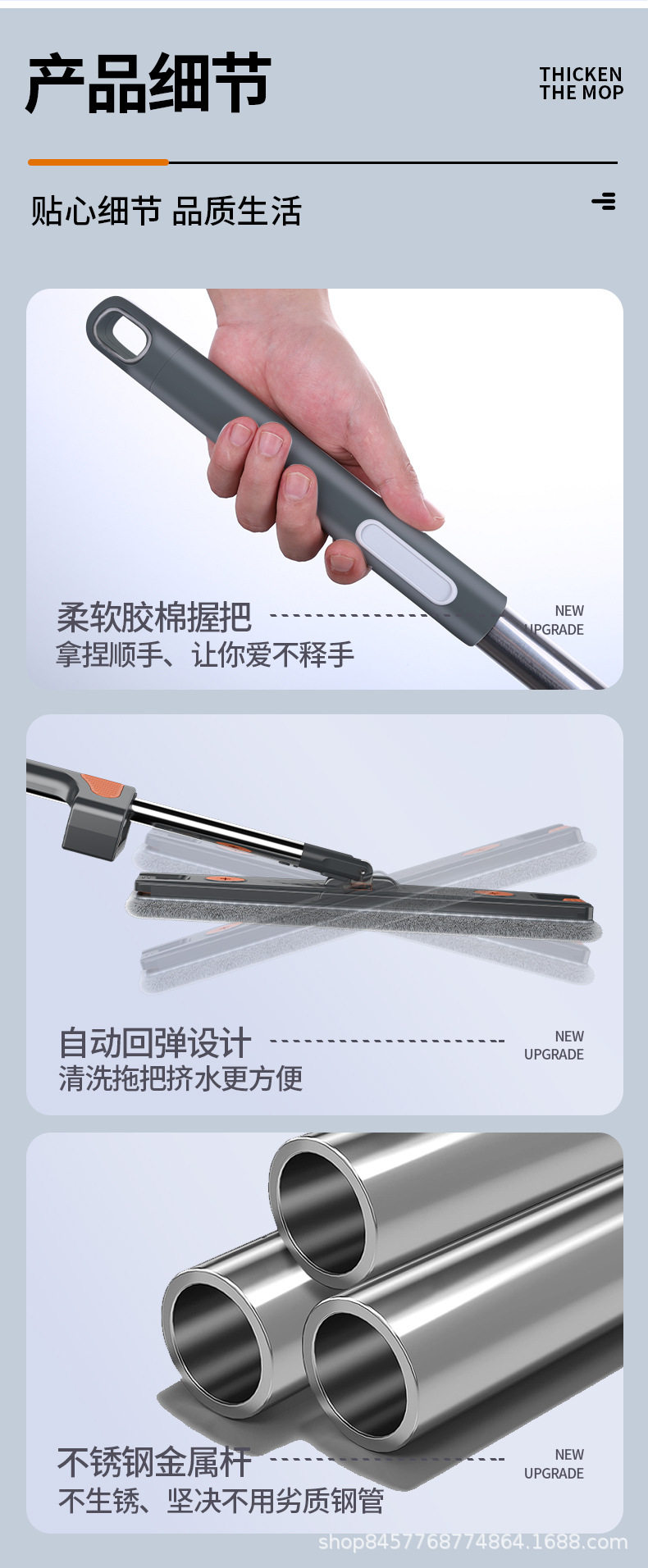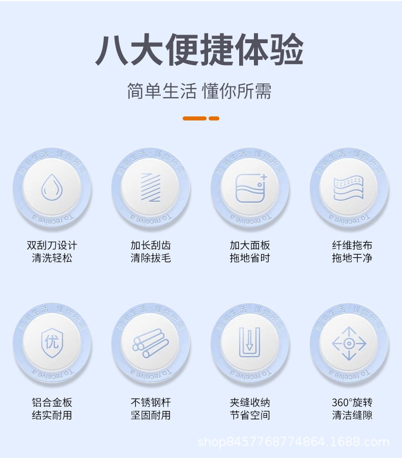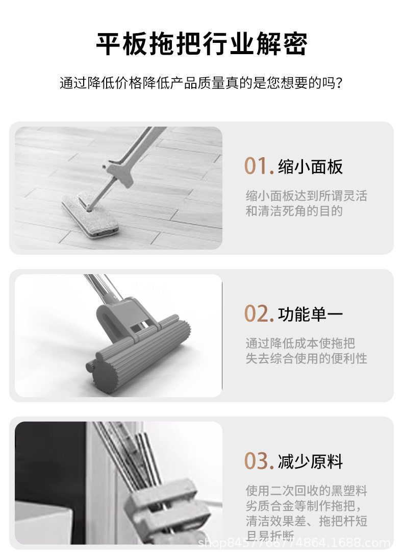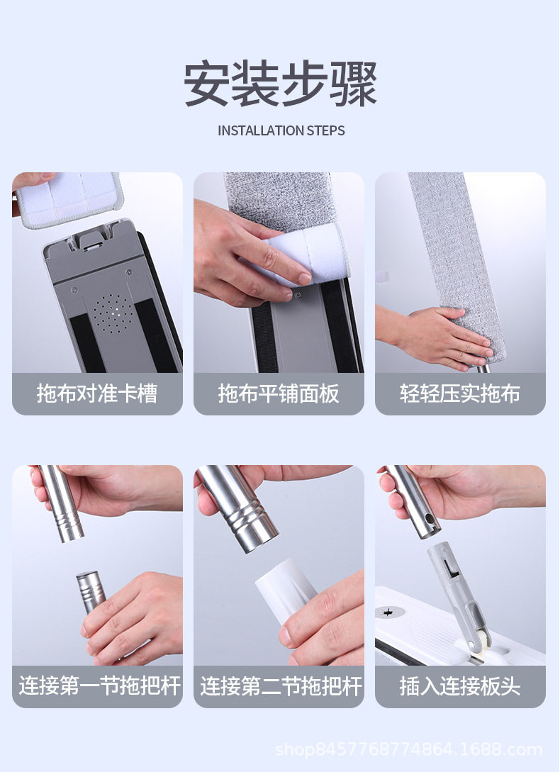 German Seiko Hand-Washable Household Mop, Lazy Mop, Water-Absorbent Dry and Wet Dual-Use Flat Mop Artifact