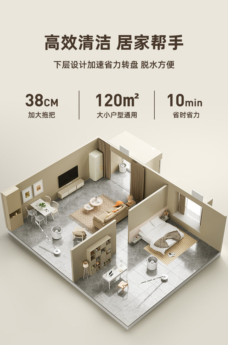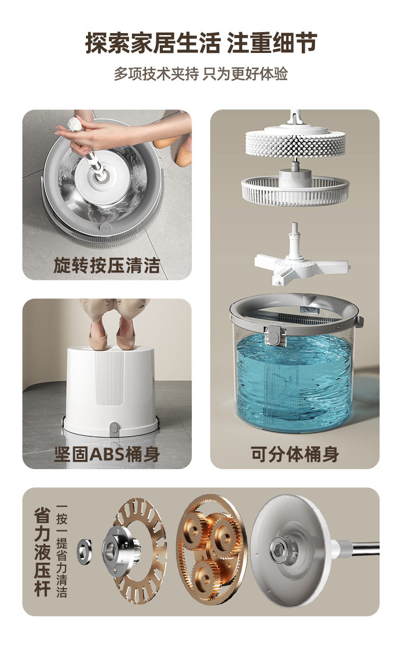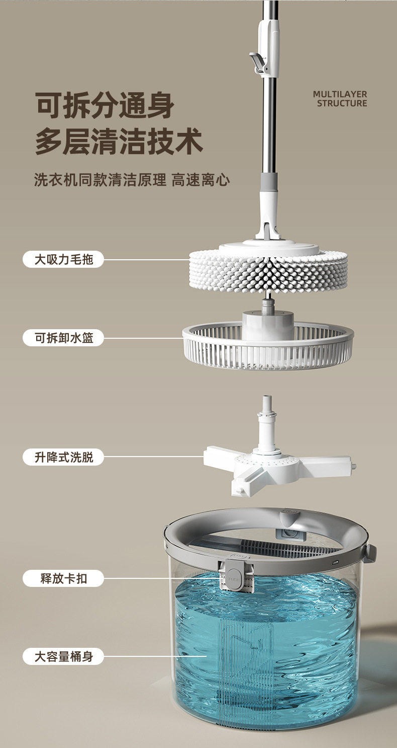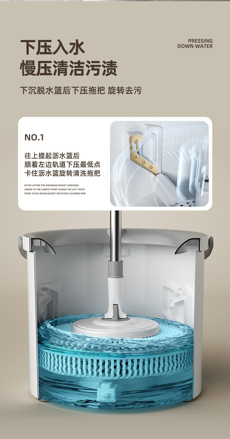 German Seiko Rotating Mop, Hand-Washable, New Self-Twisting Water Mop Bucket, Household One-Mop, Automatic Dehydration and Spin-Drying
