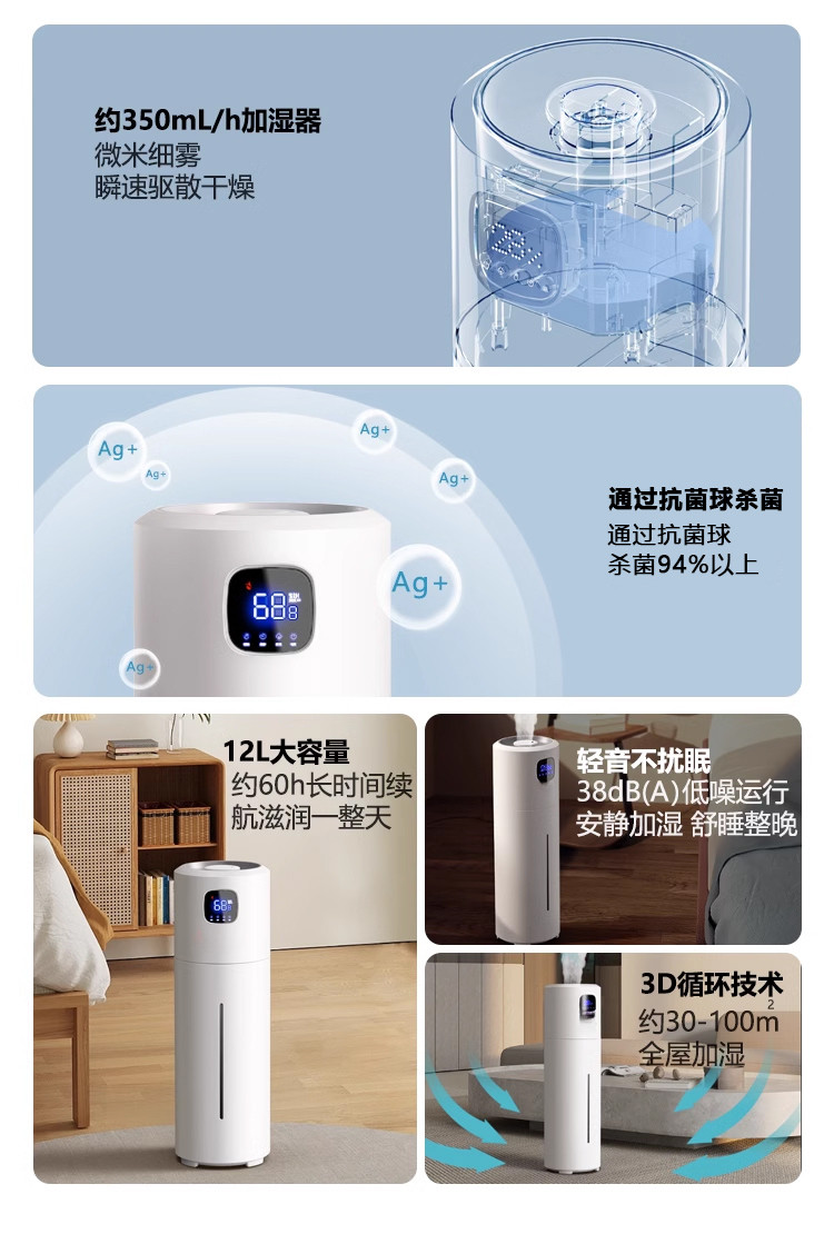 Color Classification Add Water to Touch Version,Touch Ag+ Sterilization Version,Smart Ag+ Sterilization Version,Smart Ag Sterilization and Purification,Large Area Dual Core Atomization,Intelligent Fog-Free Hot Humidification,Free Cleaning Cloth (Do Not Purchase)