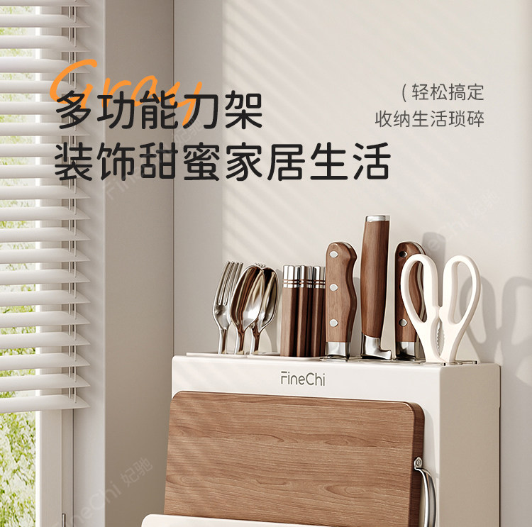 Finechi Kitchen Knife Holder Storage Rack Multifunctional Cutting Board Rack Chopstick Holder Household Cutting Board and Knife Integrated Storage