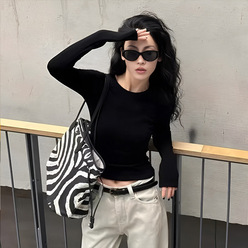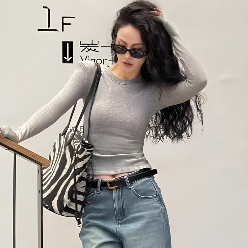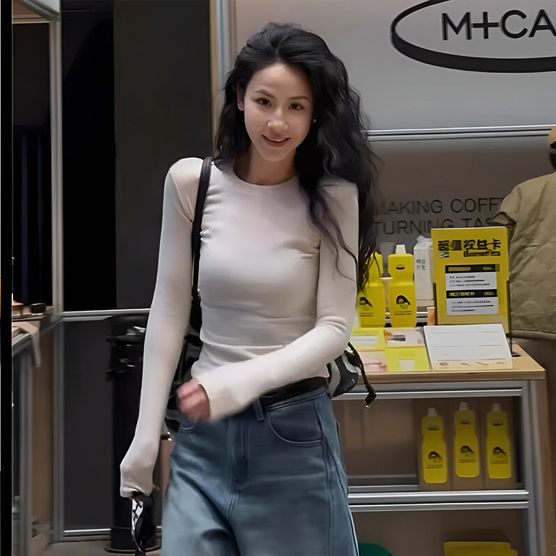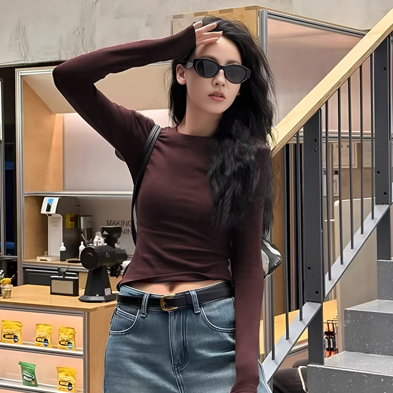 American Retro Style Tight-Fitting Long-Sleeve Base Shirt for Women, Autumn/Winter 2025 New Simple T-Shirt, Slim-Fit Inner Wear, Slimming Top